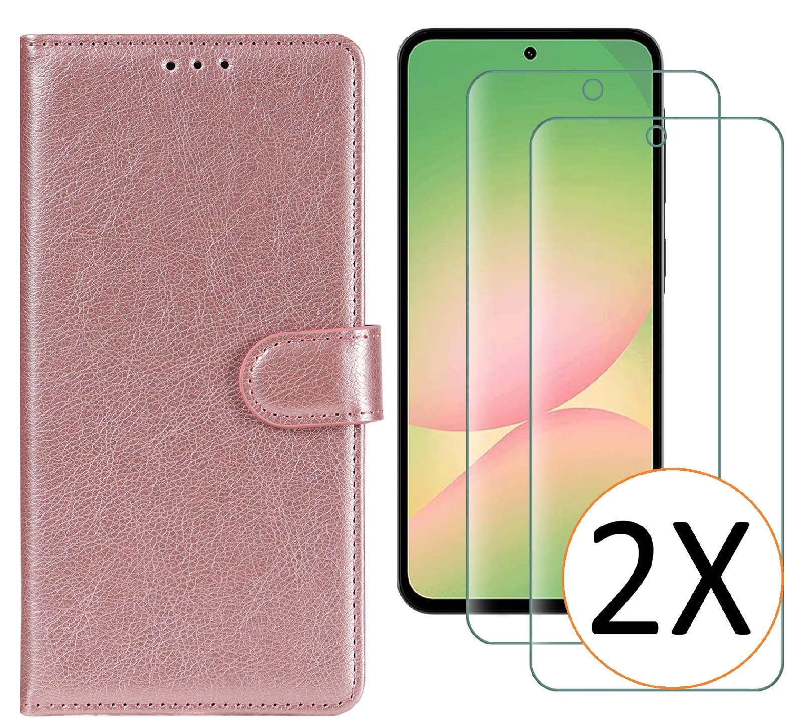 Hoesje geschikt voor Samsung Galaxy A57 5G hoesje Rose Goud pasjeshouder telefoon hoes - Met screenprotector tempered glass voor Galaxy A57 5G - 2x