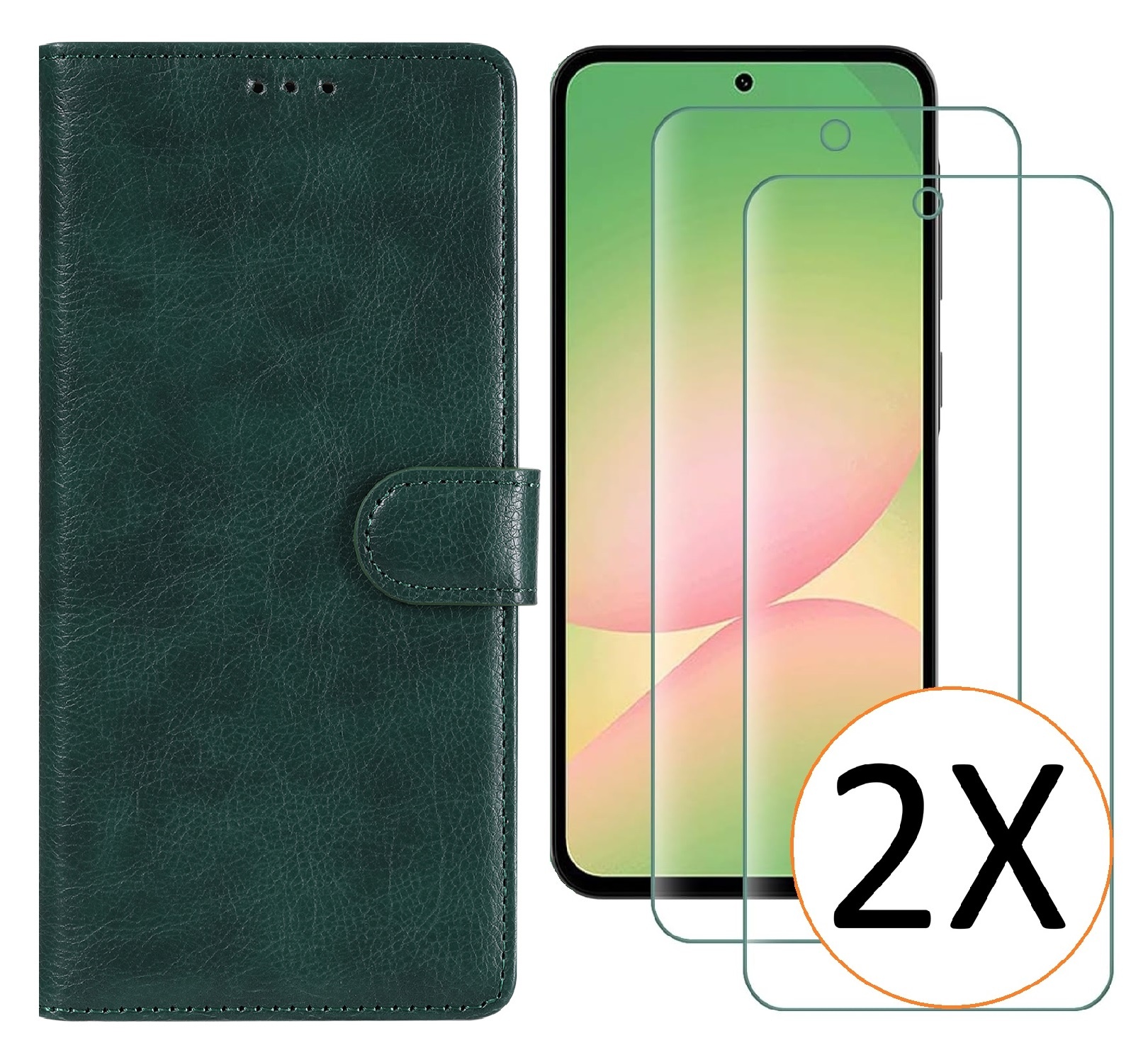Hoesje geschikt voor Samsung Galaxy A57 5G hoesje Groen pasjeshouder telefoon hoes - Met screenprotector tempered glass voor Galaxy A57 5G - 2x