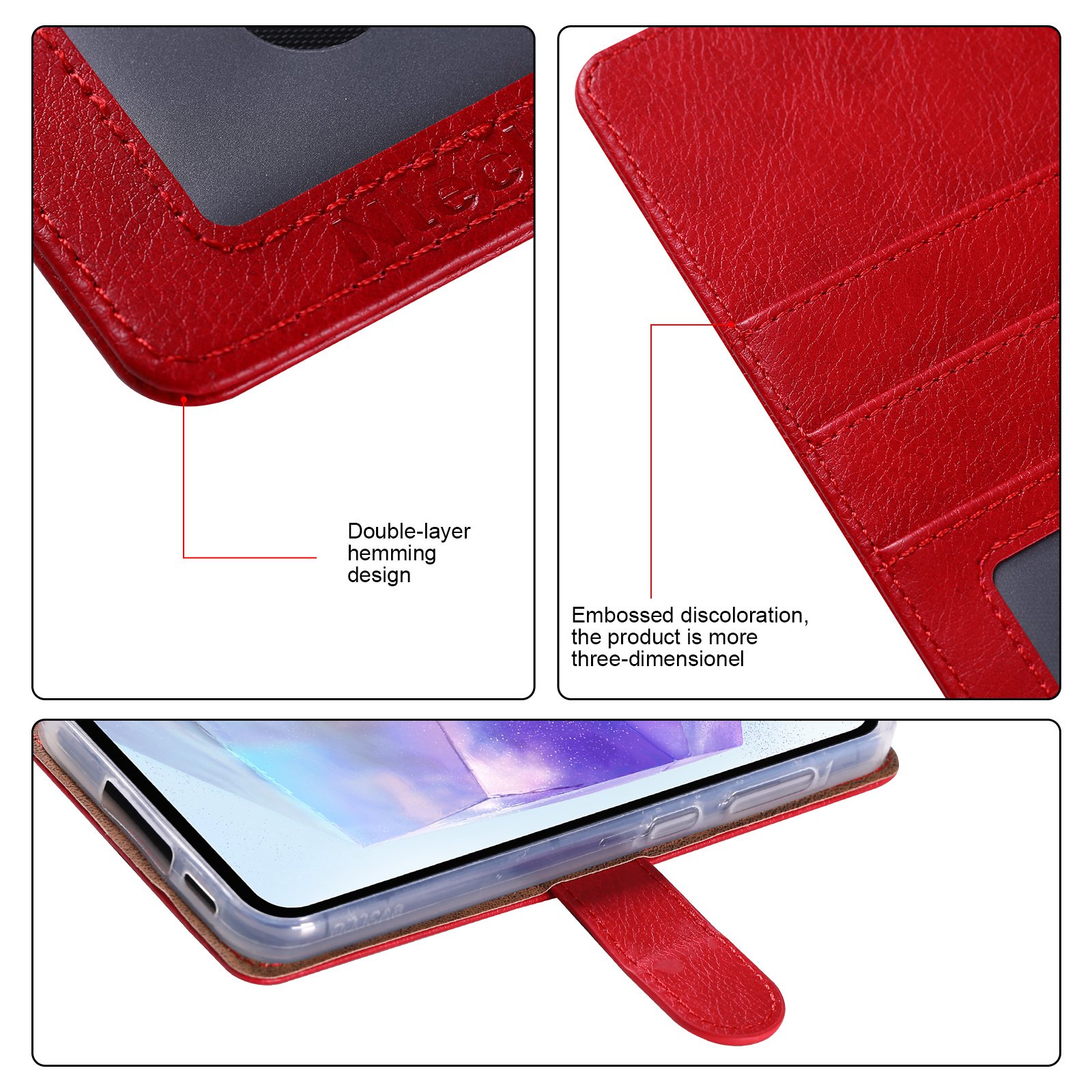 Het hoesje is gemaakt van duurzaam PU-leer en heeft een zachte TPU-binnenkant die je telefoon beschermt tegen krassen, stoten en vuil. De stevige constructie zorgt voor betrouwbare bescherming zonder extra gewicht toe te voegen.