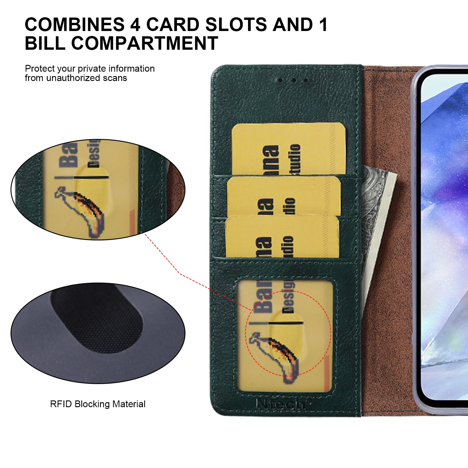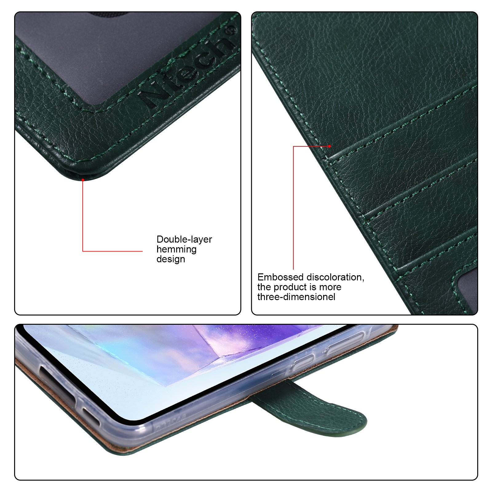 Het hoesje is gemaakt van duurzaam PU-leer en heeft een zachte TPU-binnenkant die je telefoon beschermt tegen krassen, stoten en vuil. De stevige constructie zorgt voor betrouwbare bescherming zonder extra gewicht toe te voegen.