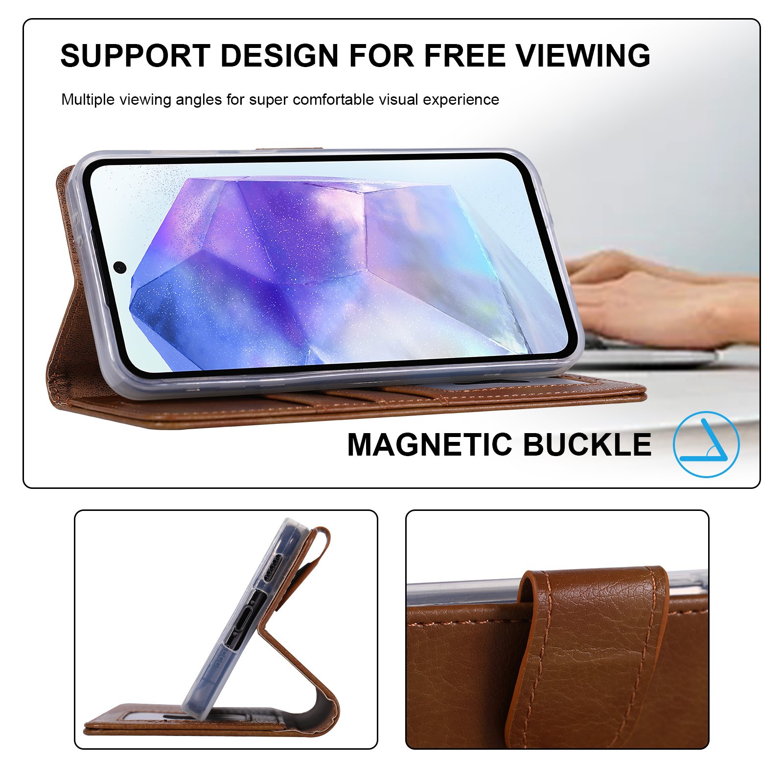 Hoesje Geschikt Voor Samsung Galaxy A57 Hoesje Bruin - met Pasjeshouder – bookcase Portemonnee - Walletcase - Portemonneehoes