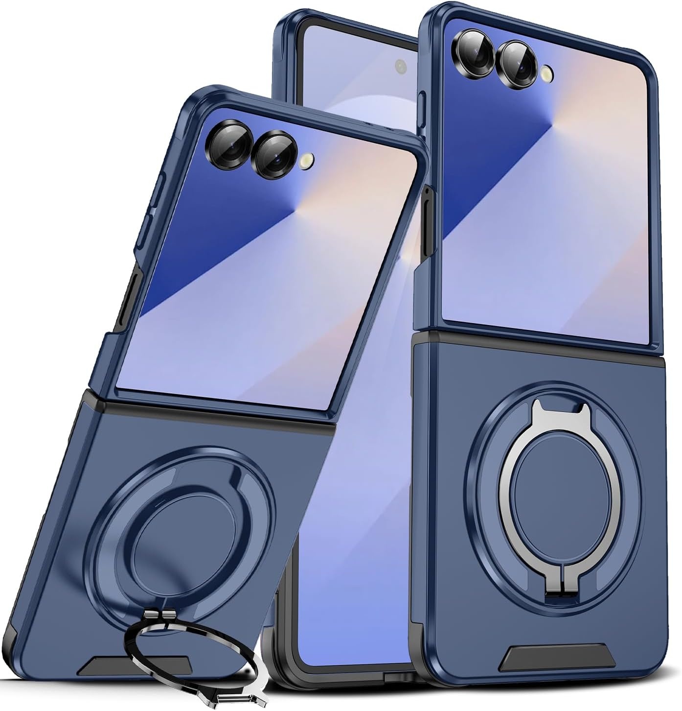 Hoesje Geschikt voor Samsung Galaxy Flip 7 hoesje Blauw - backcover met Met Draaibare Ring Houder