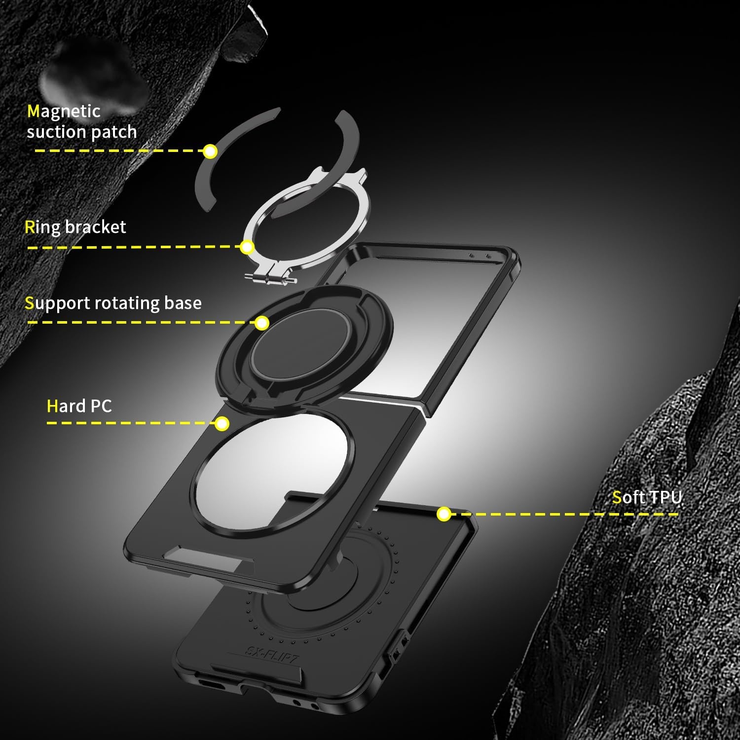 Hoesje Geschikt voor Samsung Galaxy Flip 7 hoesje Zwart - backcover met Met Draaibare Ring Houder