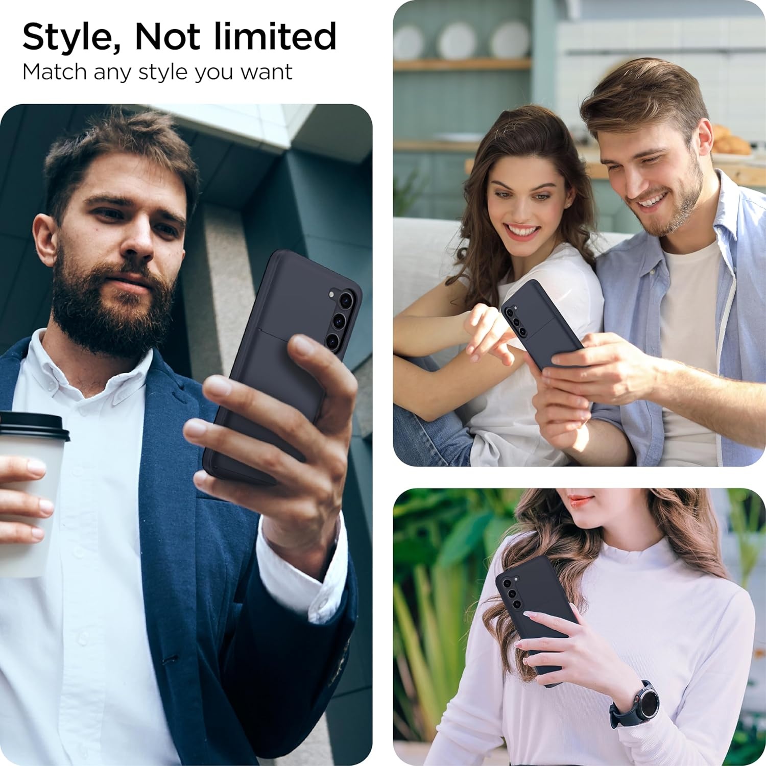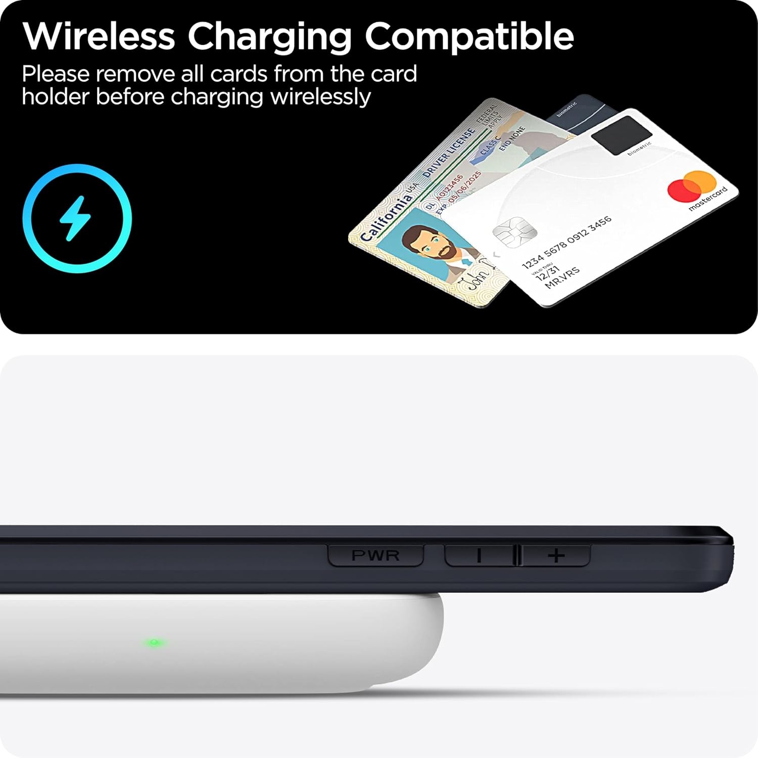 De slanke buitenkant is gemakkelijk in en uit zakken te schuiven. Draadloos opladen zonder de hoes te verwijderen. *Herinnering: Verwijder alle kaarten uit de verborgen kaartsleuf tijdens het draadloos opladen.