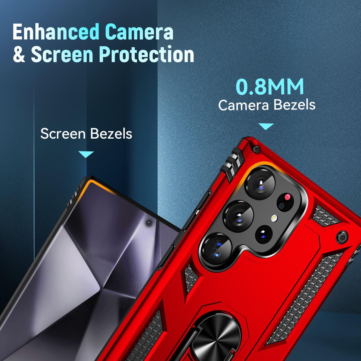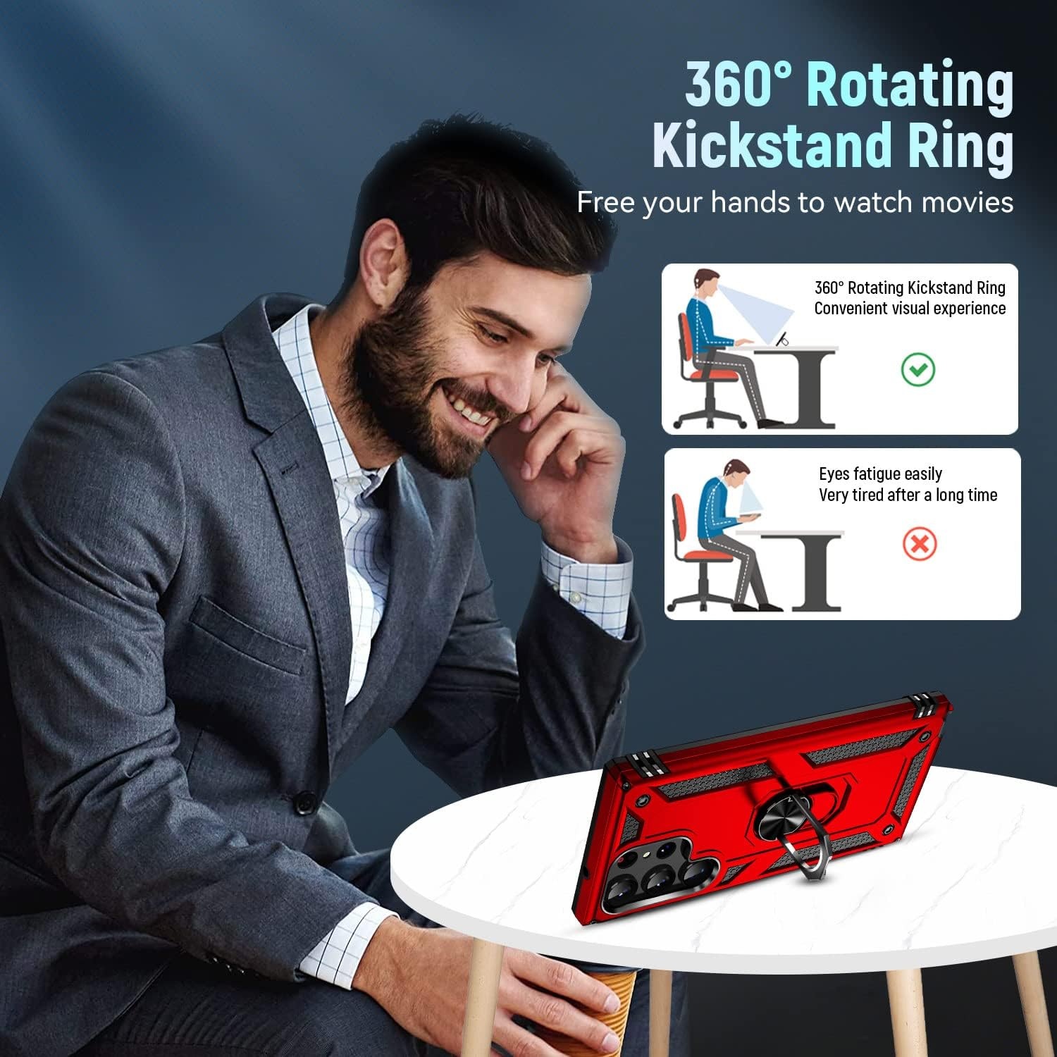 Hoesje Geschikt voor Samsung Galaxy S24 Ultra hoesje Rood Hybrid Armor Anti-Shock hoesje - Galaxy S24 Ultra 5G Hoesje kickstand Ring houder cover TPU backcover hoesje