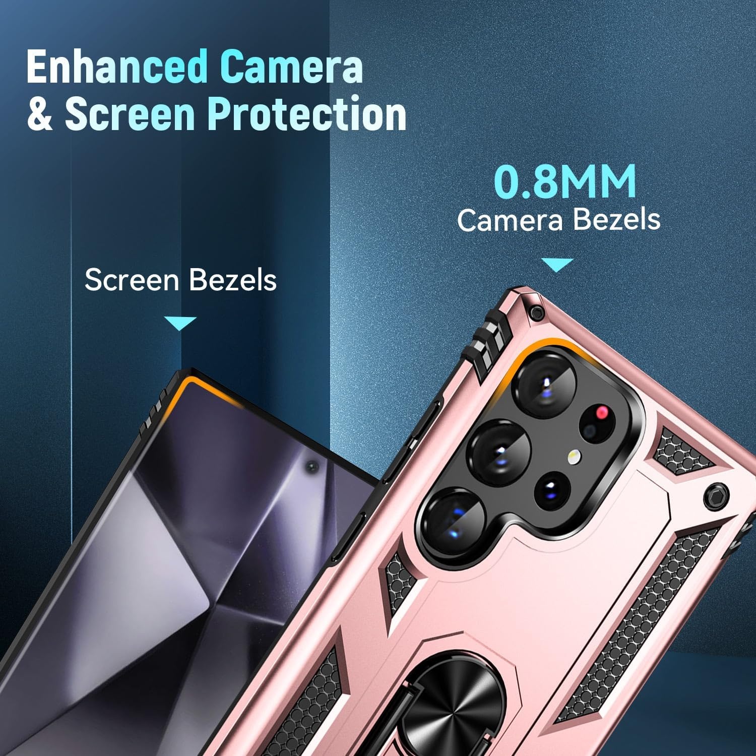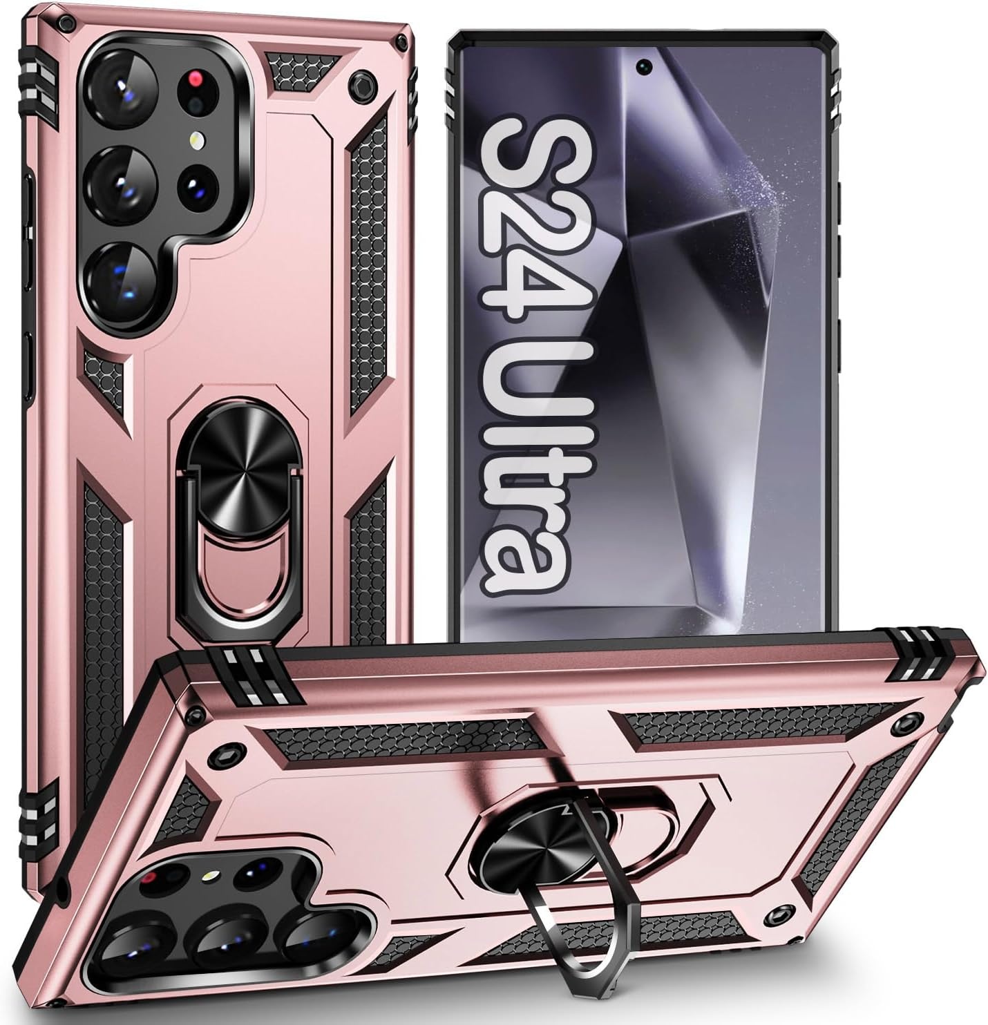 Hoesje Geschikt voor Samsung Galaxy S24 Ultra hoesje Rose Goud Hybrid Armor Anti-Shock hoesje - Galaxy S24 Ultra 5G Hoesje kickstand Ring houder cover TPU backcover hoesje