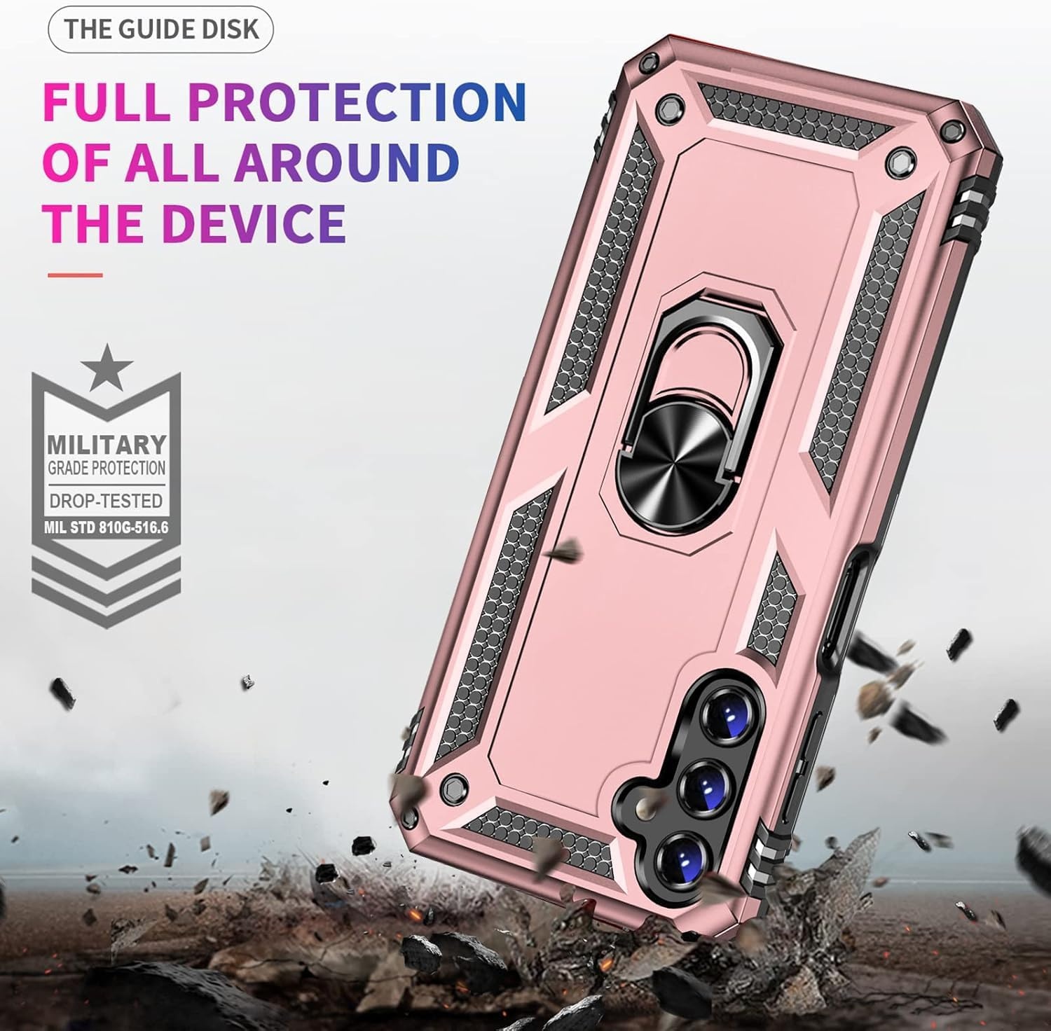 Hoesje Geschikt voor Samsung Galaxy S24 FE Hoesje Rose Goud Anti-Shock Hybrid Armor hoesje Met Draaibare Ring Houder - Samsung S24 FE Screenprotector 2 pack