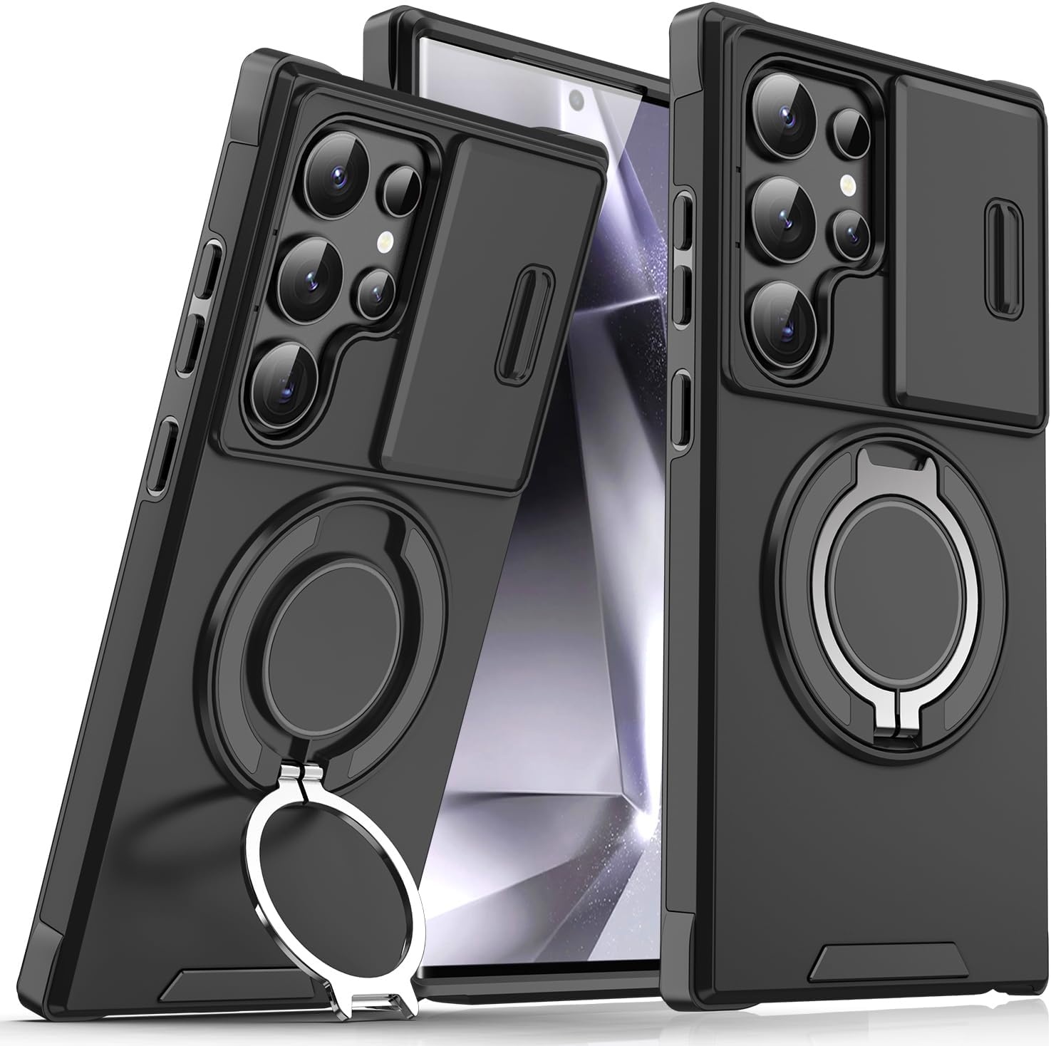 Hoesje Geschikt voor Samsung Galaxy S24 Ultra hoesje Zwart backcover met Met Draaibare Ring Houder en camera bescherming