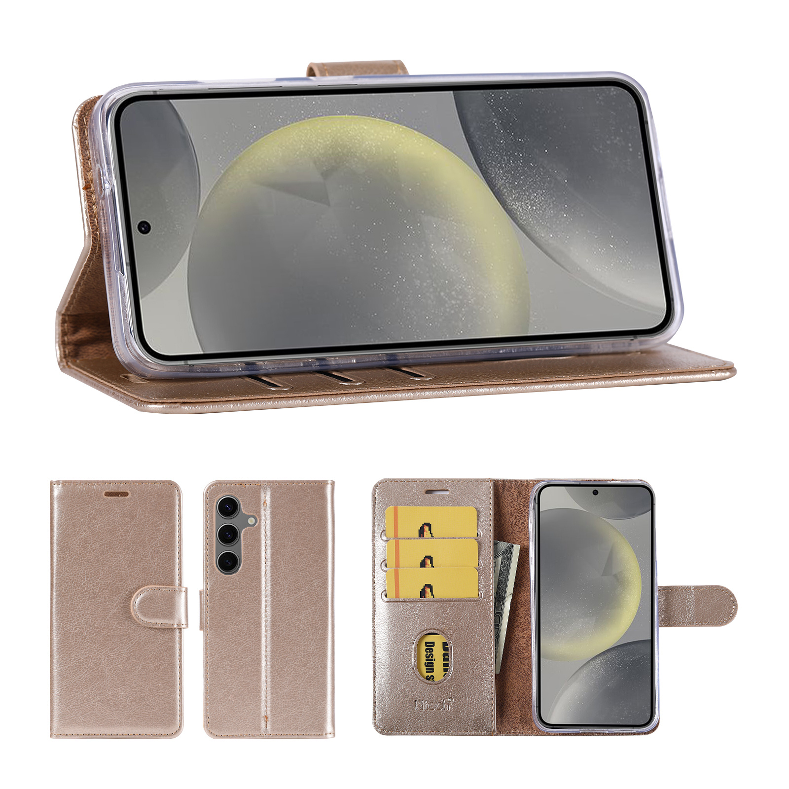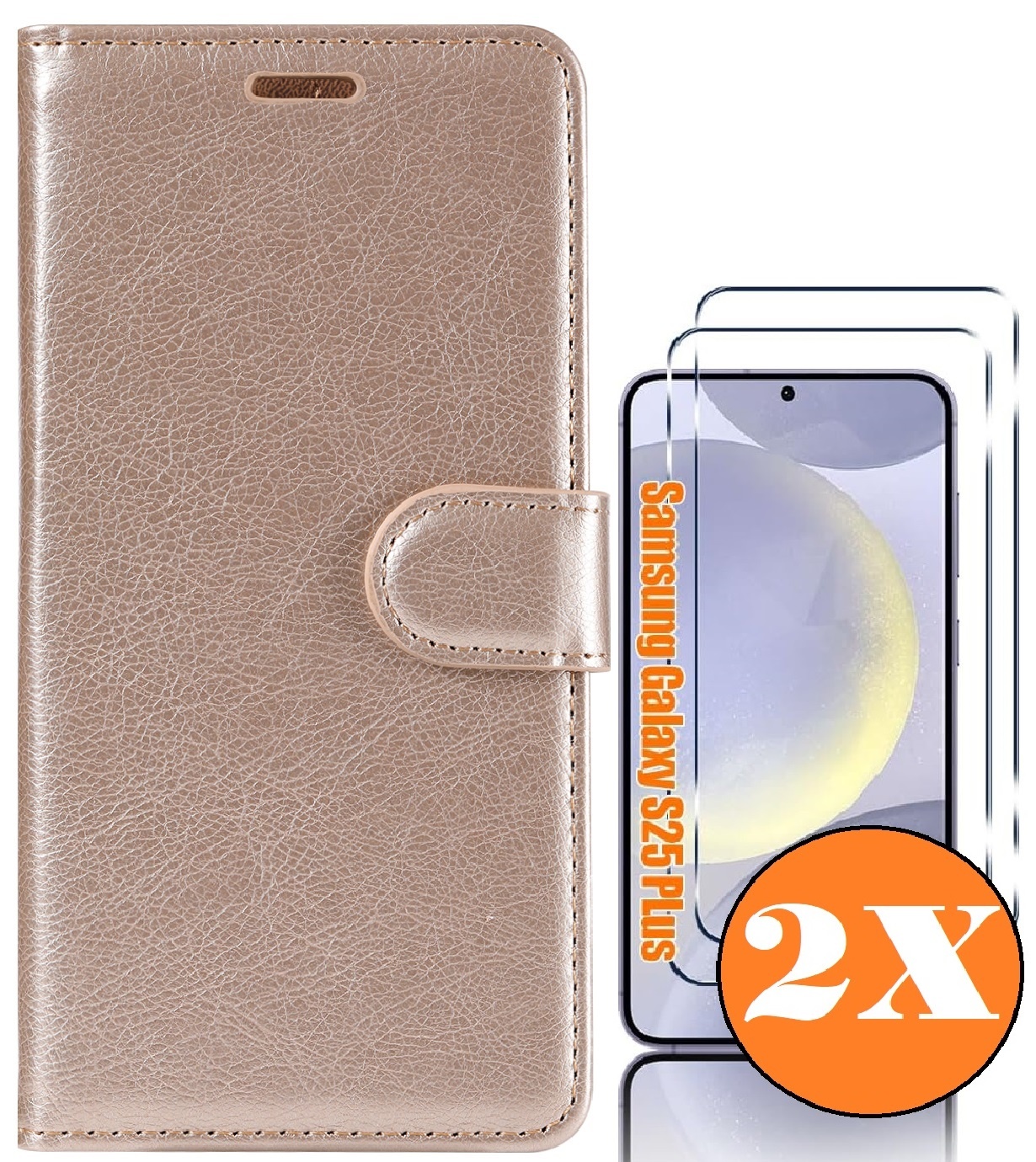 Hoesje geschikt voor Samsung Galaxy S25 Plus bookcase Goud - Met screenprotector tempered glass Galaxy S25 Plus - 2x