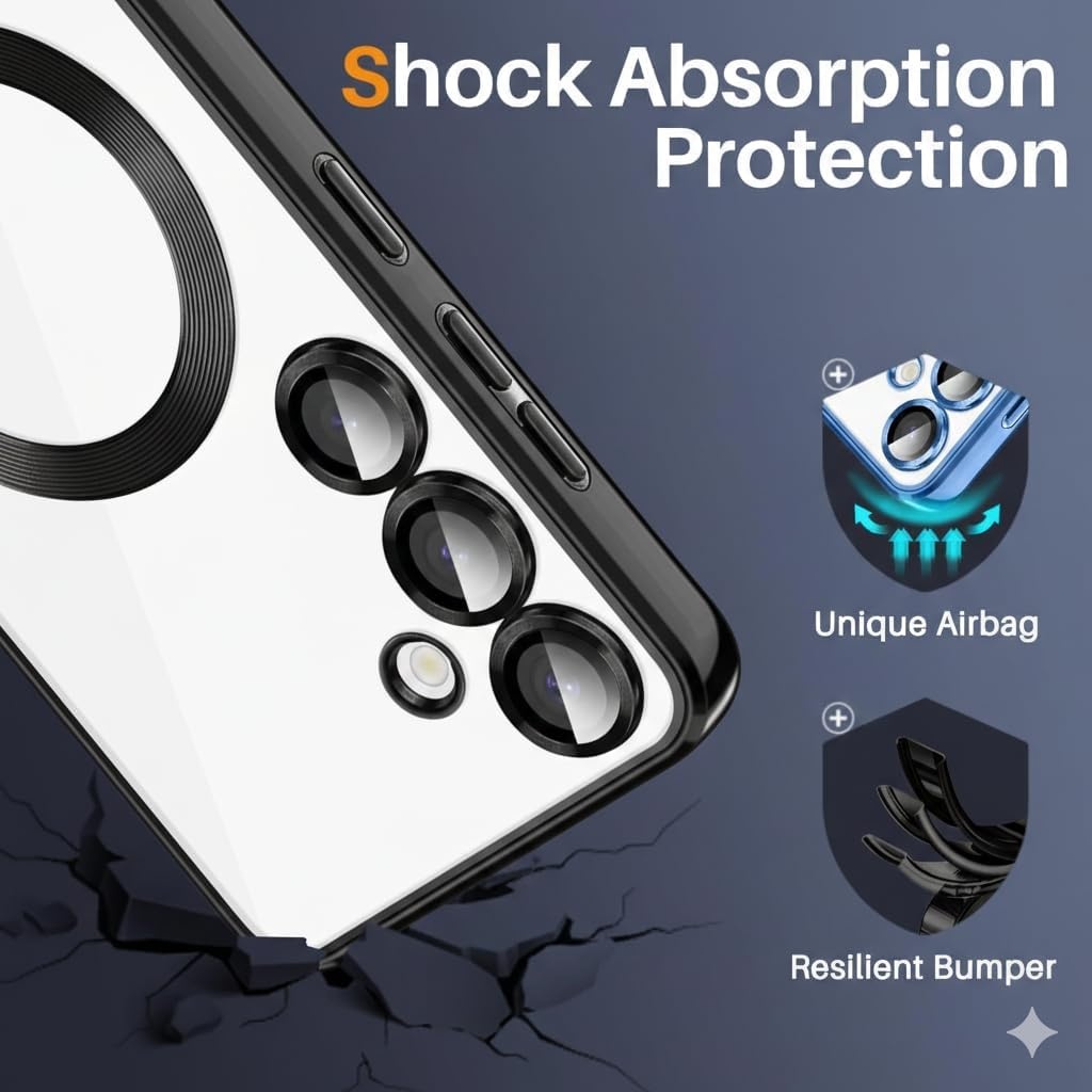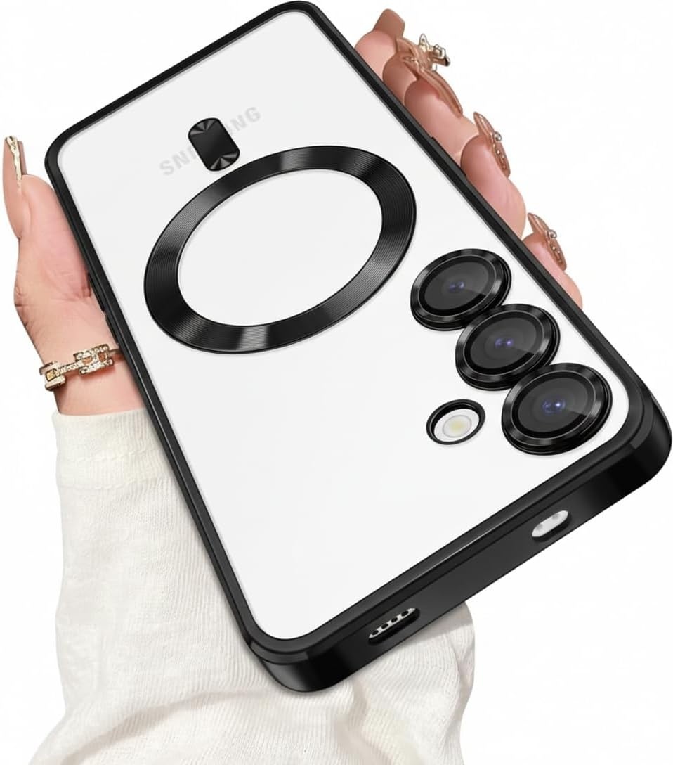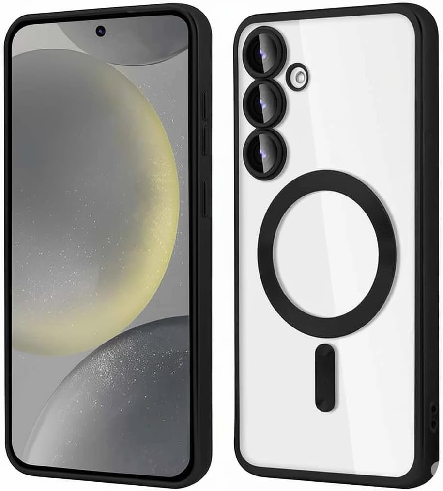 Hoesje Geschikt voor Samsung Galaxy S25 FE hoesje backcover Zwart – Geschikt voor Magsafe Lens beschermer – Transparant