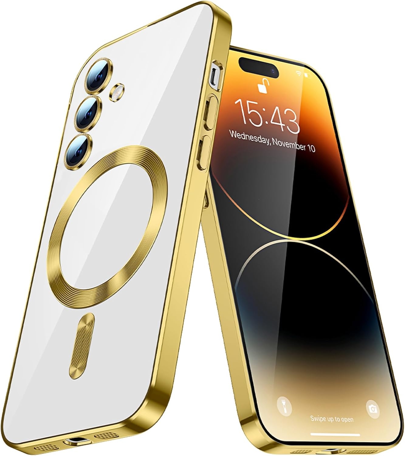 Hoesje Geschikt voor Samsung Galaxy S25 FE hoesje backcover Goud – Geschikt voor Magsafe Lens beschermer – Transparant