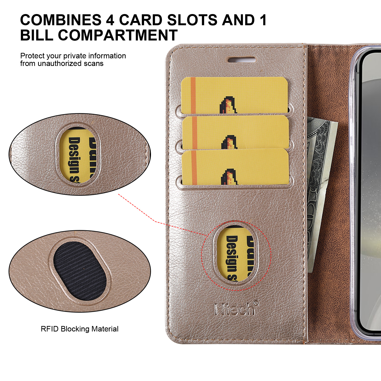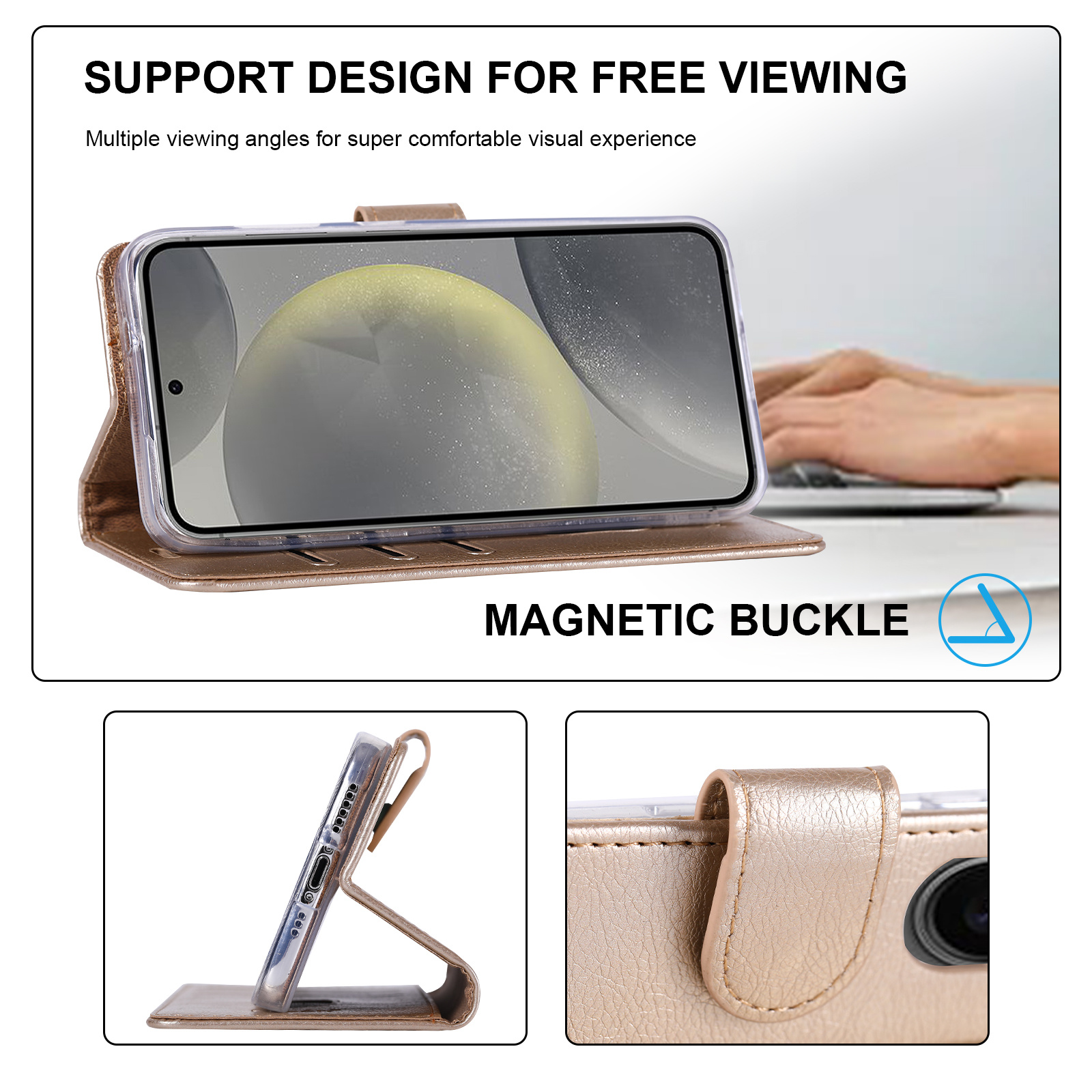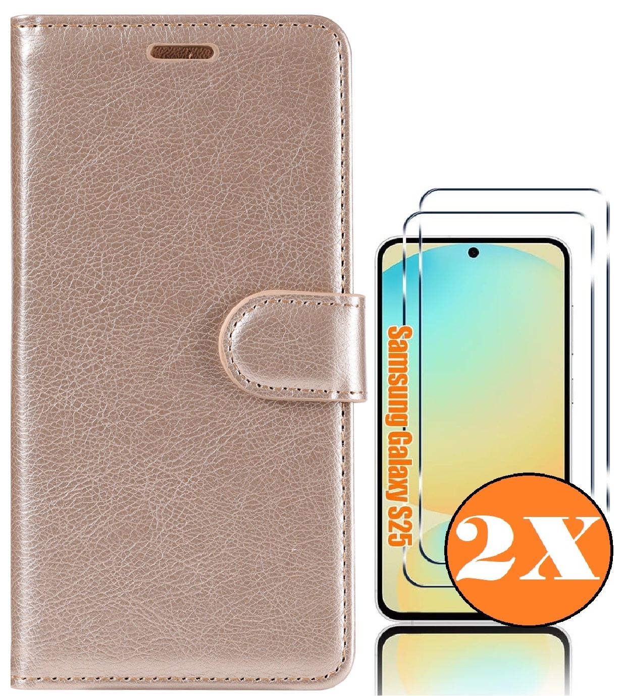 Hoesje geschikt voor Samsung Galaxy S25 bookcase Goud - Met screenprotector tempered glass Galaxy S25 - 2x