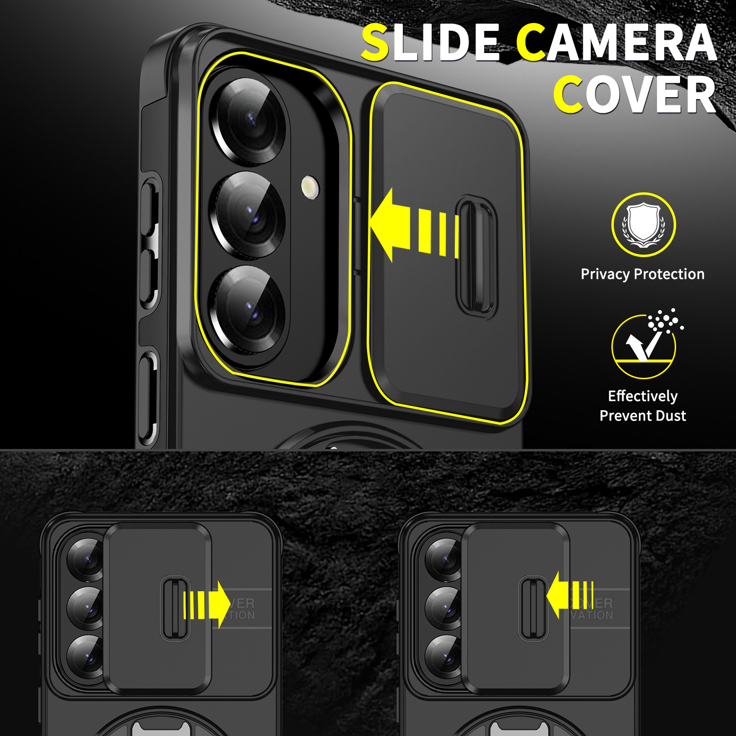 - De cover is eenvoudig te bedienen en glijdt gemakkelijk open om foto's en video's te maken zonder belemmering. Hij blijft stevig gesloten om de camera altijd te beschermen.