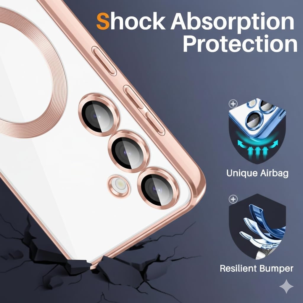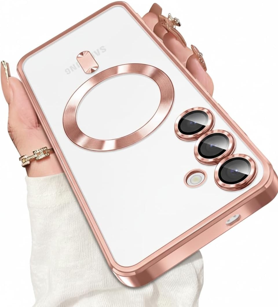 Hoesje Geschikt voor Samsung Galaxy S26 Plus hoesje backcover Rose Goud – Geschikt voor Magsafe Lens beschermer – Transparant