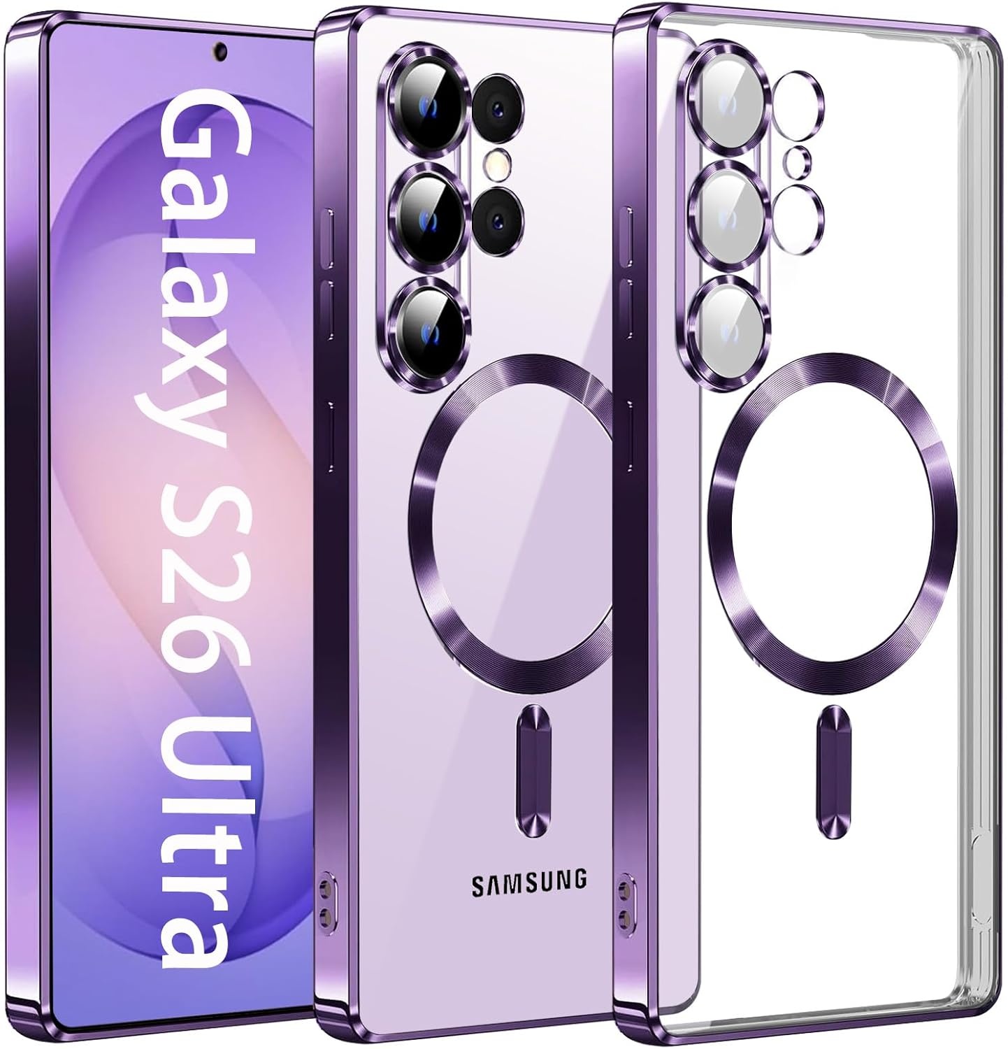Hoesje Geschikt voor Samsung Galaxy S26 Ultra hoesje backcover Paars – Geschikt voor Magsafe Lens beschermer – Transparant