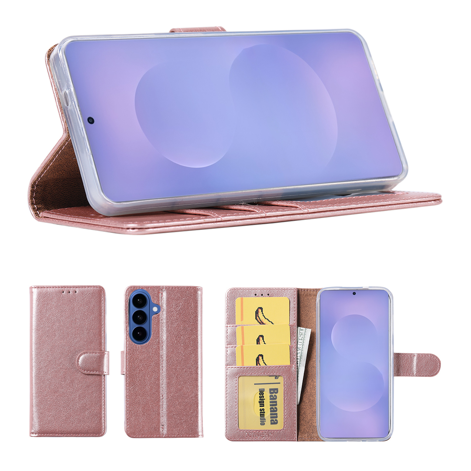 Hoesje geschikt voor Samsung Galaxy S26 5G hoesje Rose Goud pasjeshouder telefoon hoes - Met screenprotector tempered glass voor Galaxy S26 5G - 2x