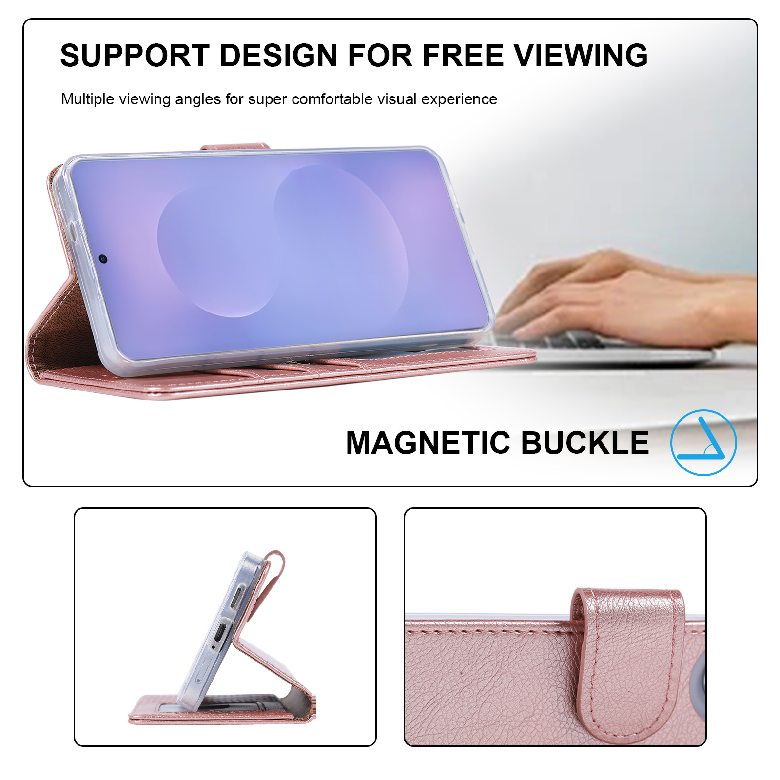 Dit boek hoesje geschikt voor Samsung Galaxy S26 5G maakt het mogelijk om jouw toestel in horizontale stand neer te leggen om bijvoorbeeld een filmpje te kunnen kijken. Doordat er openingen aan de voorzijde in dit boek hoesje zitten, kan je met het Samsung Galaxy S26 5G hoesje gesloten bellen als je het gesprek hebt aangenomen.