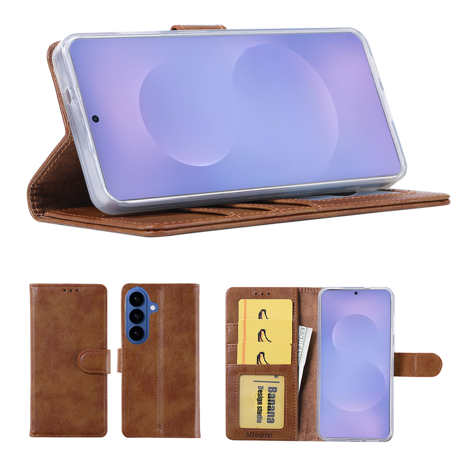 Hoesje geschikt voor Samsung Galaxy S26 Plus 5G hoesje Bruin pasjeshouder telefoon hoes - Met screenprotector tempered glass voor Galaxy S26 Plus 5G - 2x