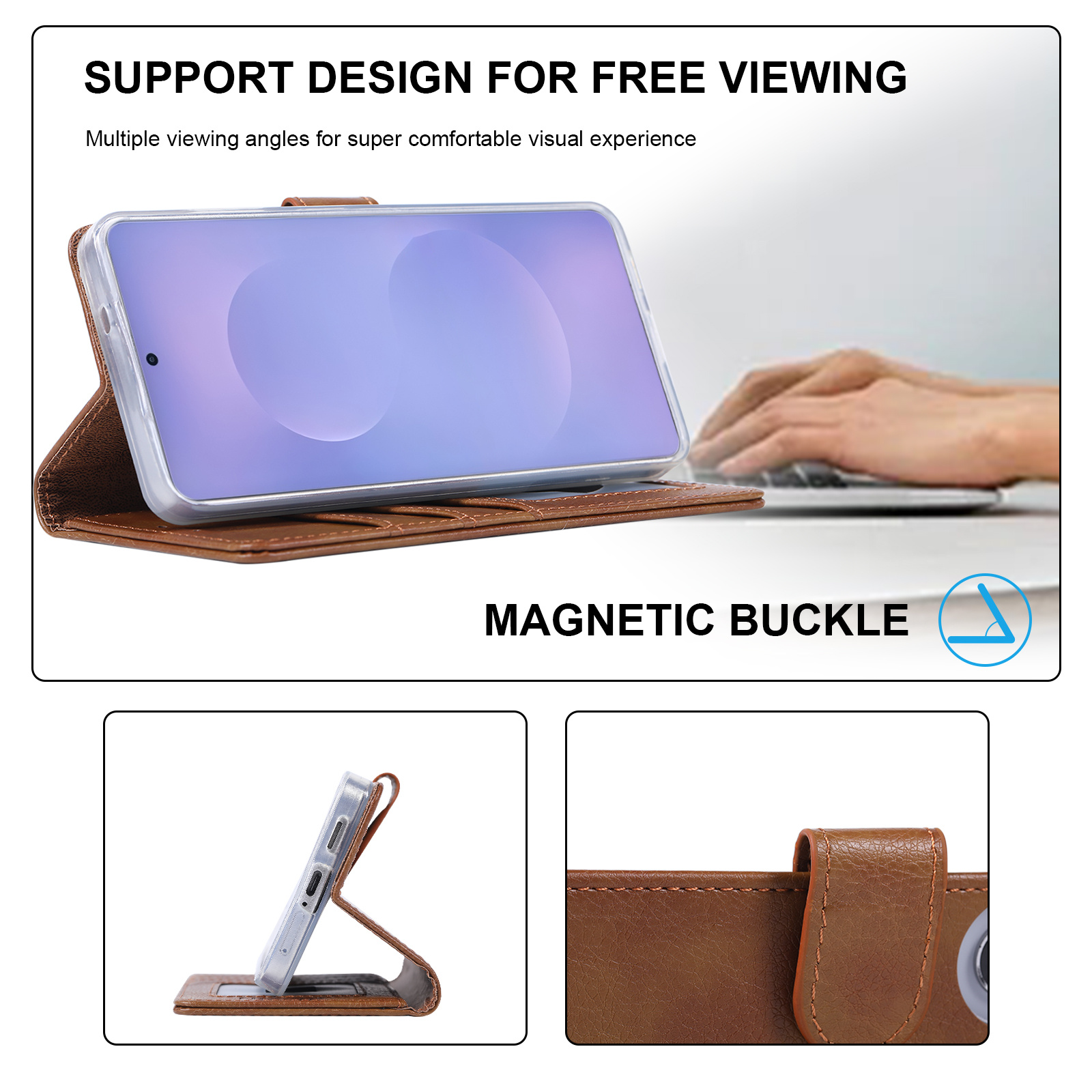 Dit boek hoesje geschikt voor Samsung Galaxy S26 Plus 5G maakt het mogelijk om jouw toestel in horizontale stand neer te leggen om bijvoorbeeld een filmpje te kunnen kijken. Doordat er openingen aan de voorzijde in dit boek hoesje zitten, kan je met het Samsung Galaxy S26 Plus 5G hoesje gesloten bellen als je het gesprek hebt aangenomen.