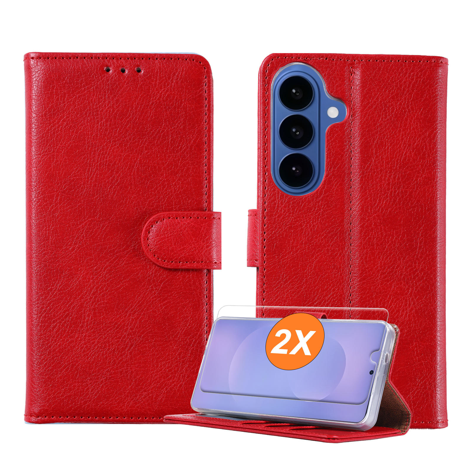 Hoesje geschikt voor Samsung Galaxy S26 Plus 5G hoesje Rood pasjeshouder telefoon hoes - Met screenprotector tempered glass voor Galaxy S26 Plus 5G - 2x