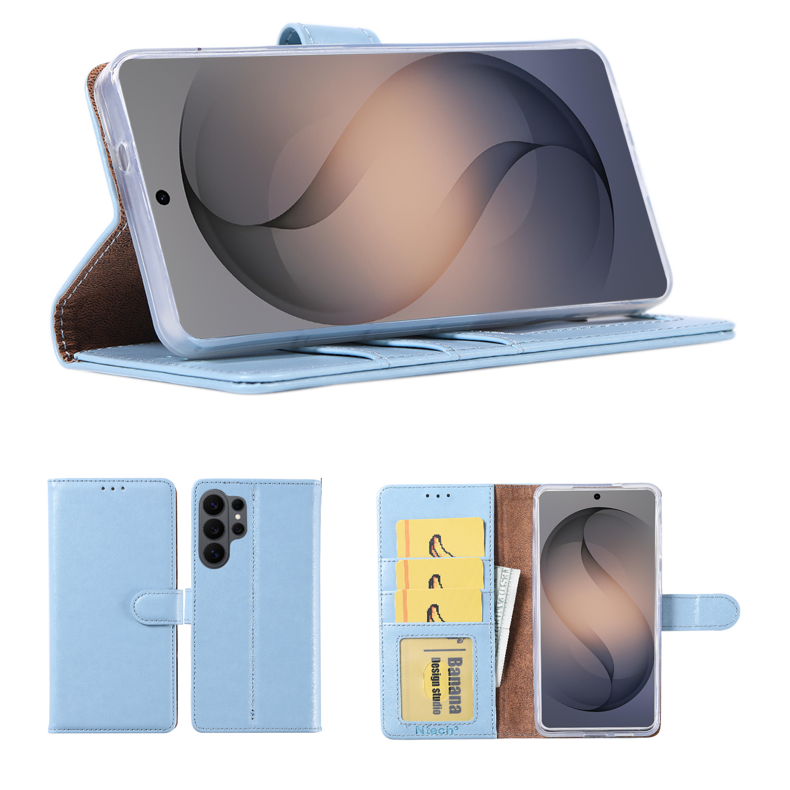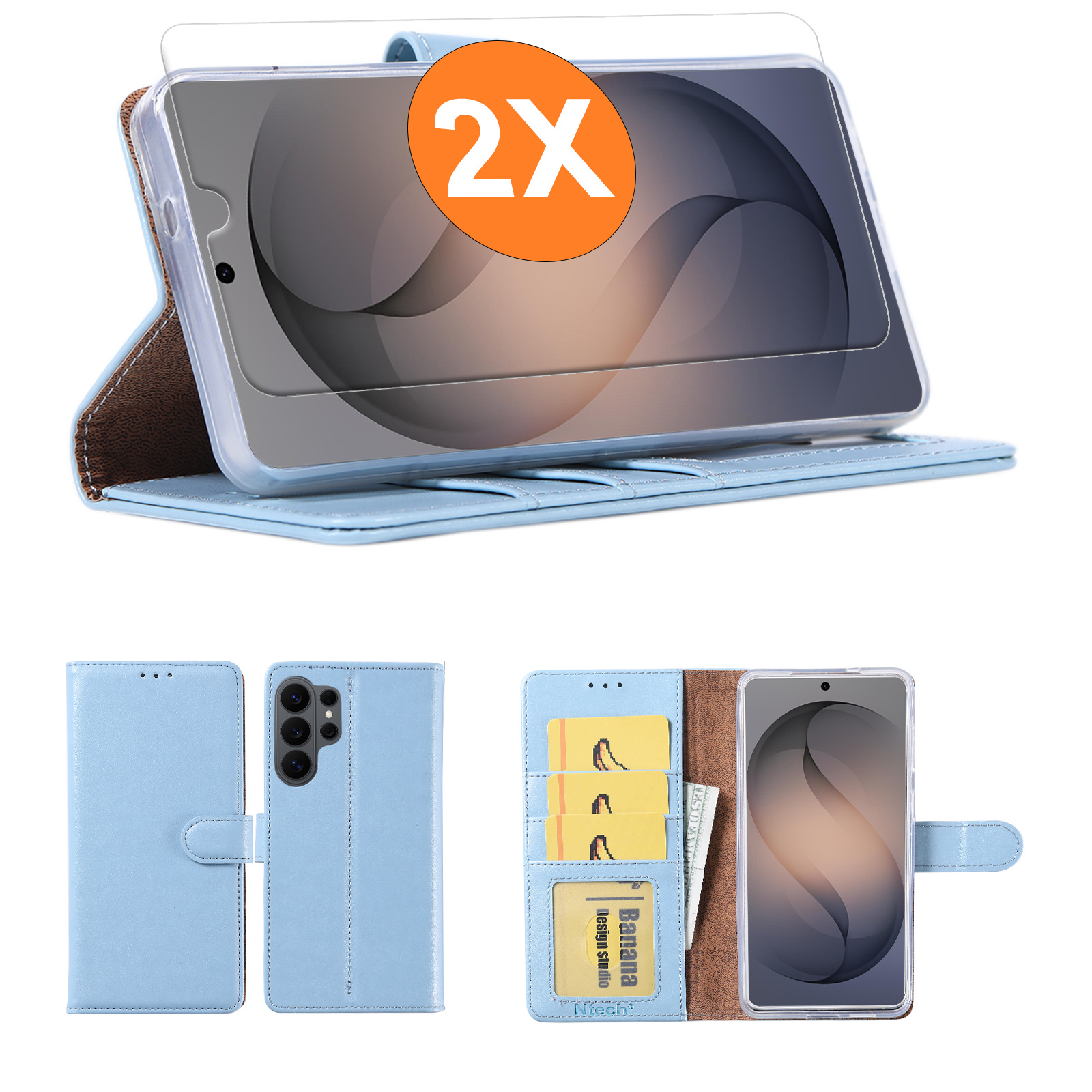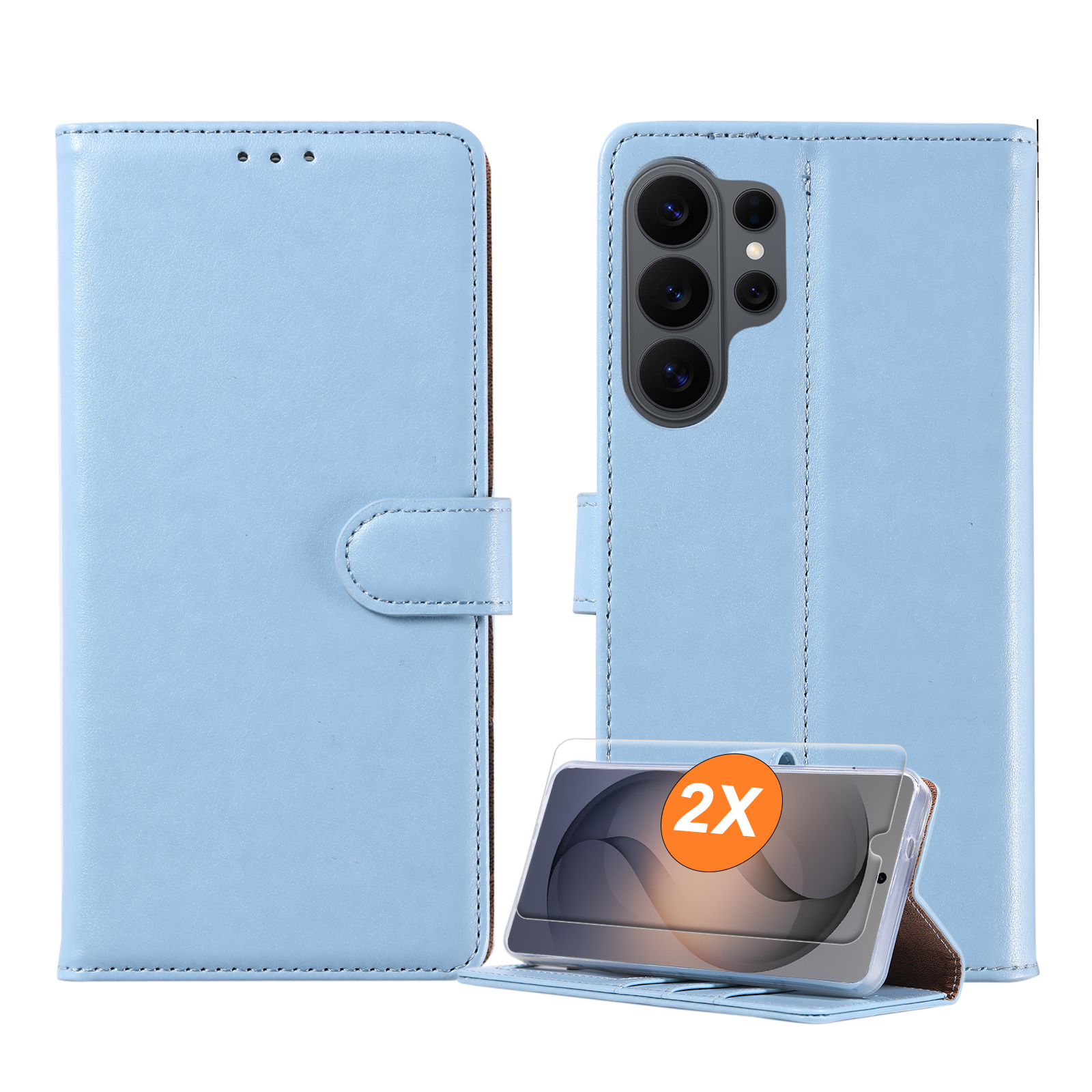 Hoesje geschikt voor Samsung Galaxy S26 Ultra 5G hoesje Blauw pasjeshouder telefoon hoes - Met screenprotector tempered glass voor Galaxy S26 Ultra 5G - 2x