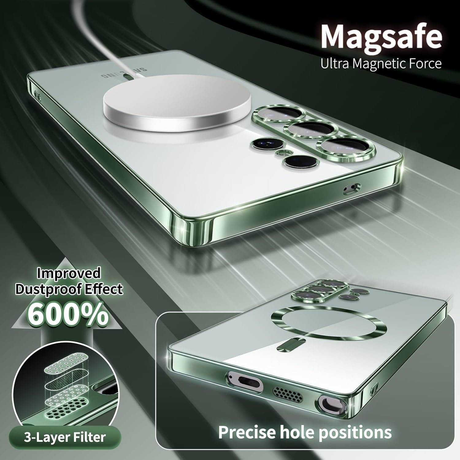 Hoesje Geschikt voor Samsung Galaxy S26 Ultra hoesje backcover Groen – Geschikt voor Magsafe Lens beschermer – Transparant