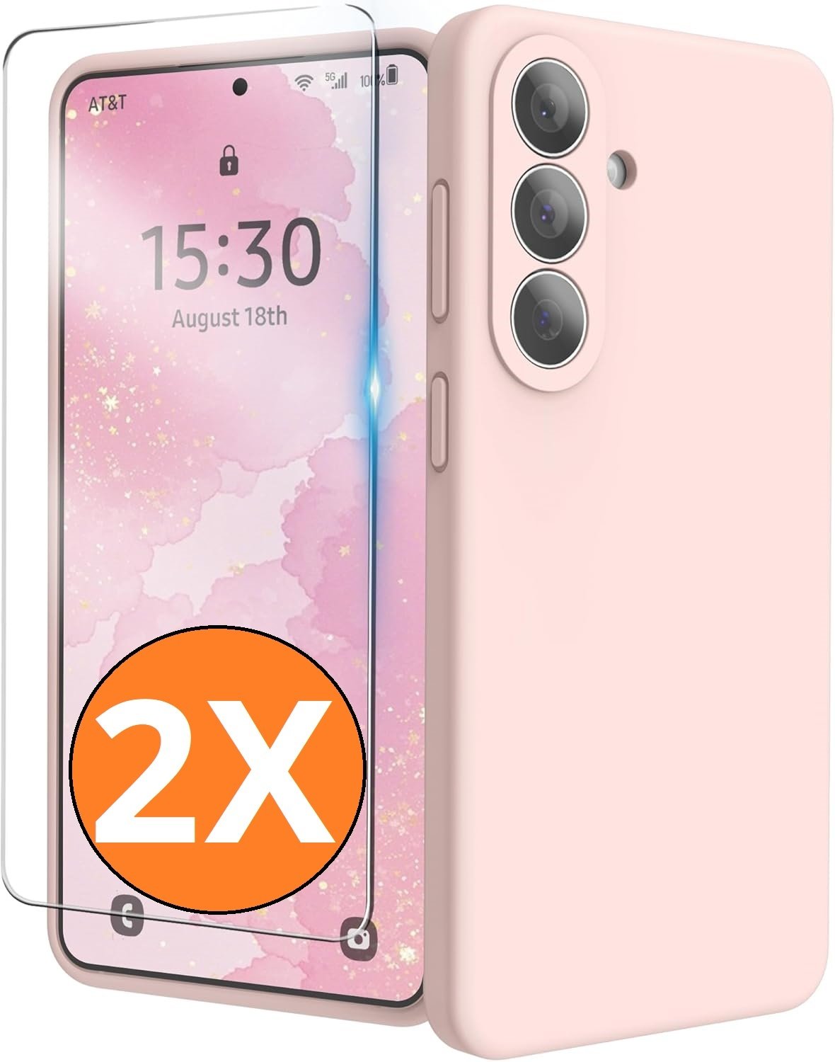 Hoesje geschikt voor Samsung Galaxy S26 Plus 5G Hoesje siliconen Licht Roze zacht siliconen hoesje TPU - met Samsung S26 Plus Screenprotector - 2 stuks