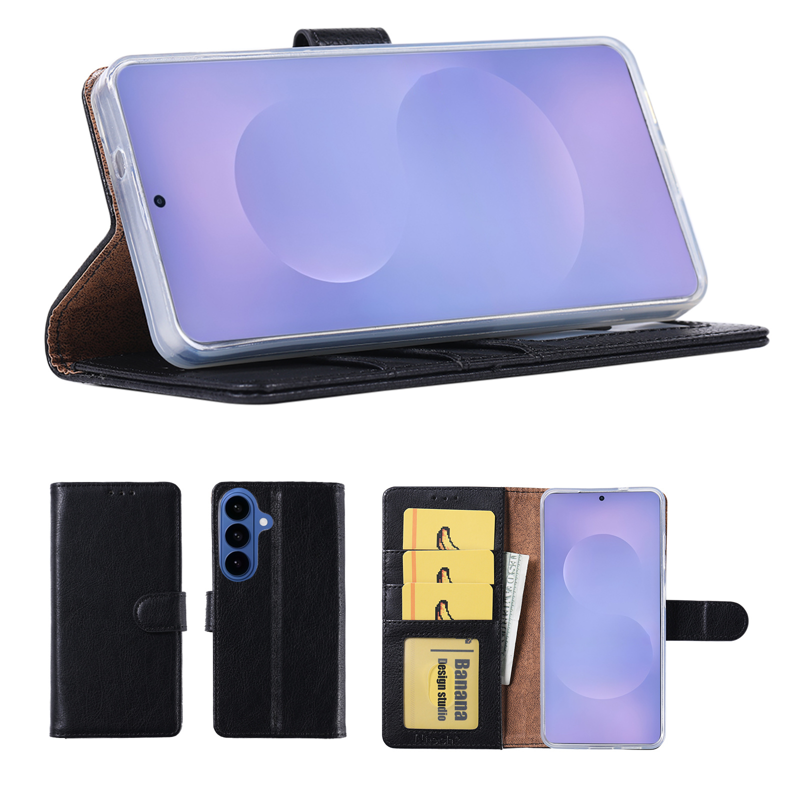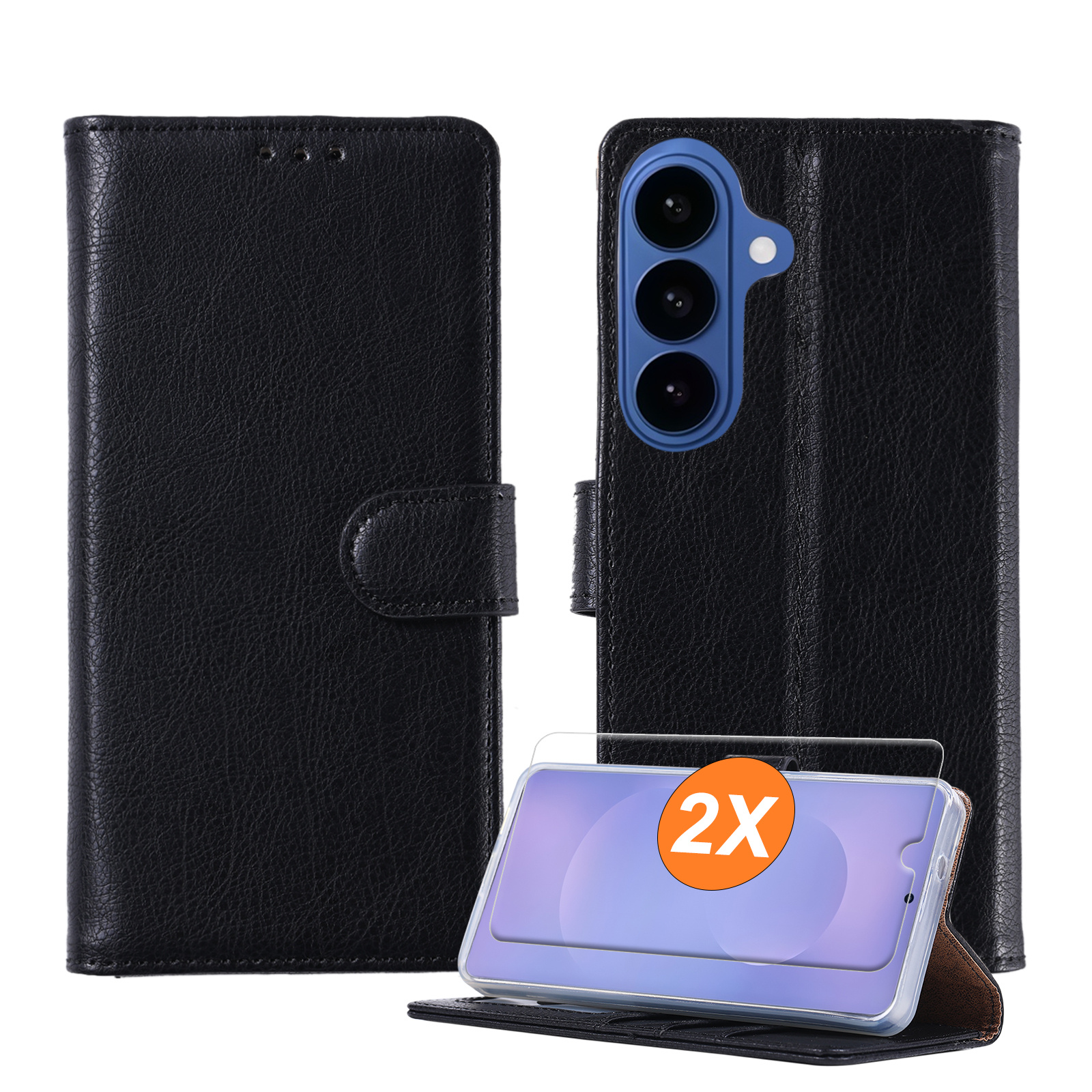 Hoesje geschikt voor Samsung Galaxy S26 Plus 5G hoesje Zwart pasjeshouder telefoon hoes - Met screenprotector tempered glass voor Galaxy S26 Plus 5G - 2x