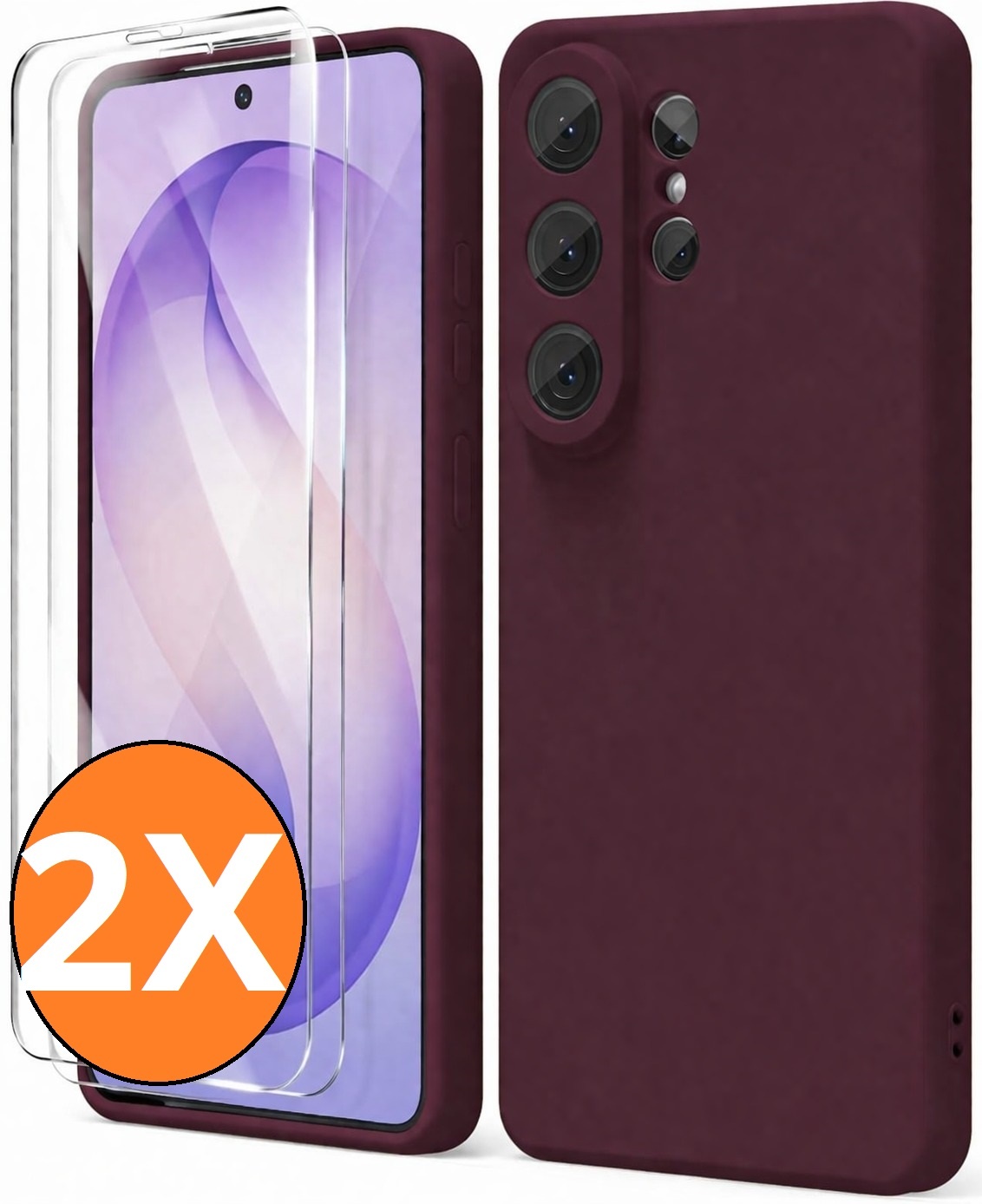 Hoesje geschikt voor Samsung Galaxy S26 Ultra 5G Hoesje siliconen Wine Rood zacht siliconen hoesje TPU - met Samsung S26 Ultra Screenprotector - 2 stuks