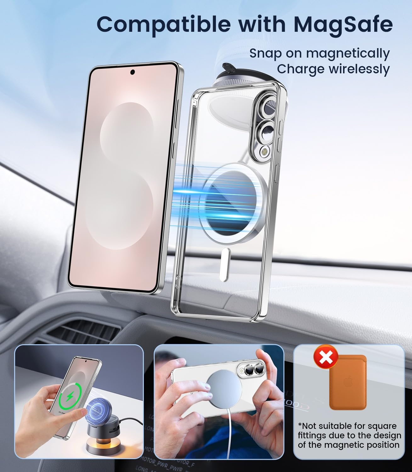 Hoesje Geschikt voor Samsung Galaxy S25 Edge– MagSafe Hoesje met Lensbeschermer en Transparante Backcover