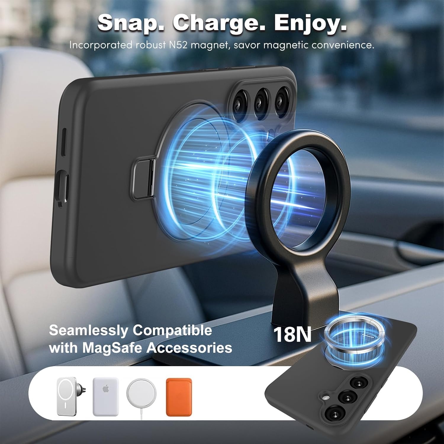 Dankzij de volledige MagSafe-compatibiliteit sluit de hoes perfect aan op MagSafe-opladers, magnetische houders, wallets en powerbanks. De nauwkeurig geplaatste magneten zorgen voor een sterke en stabiele verbinding, zodat draadloos opladen snel en efficiënt blijft zonder de hoes te verwijderen.