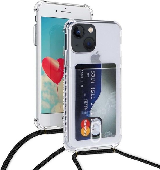 Hoesje met koord en pashouder Geschikt voor iPhone 16 Plus Hoesje - transparant siliconen shockproof backcover case