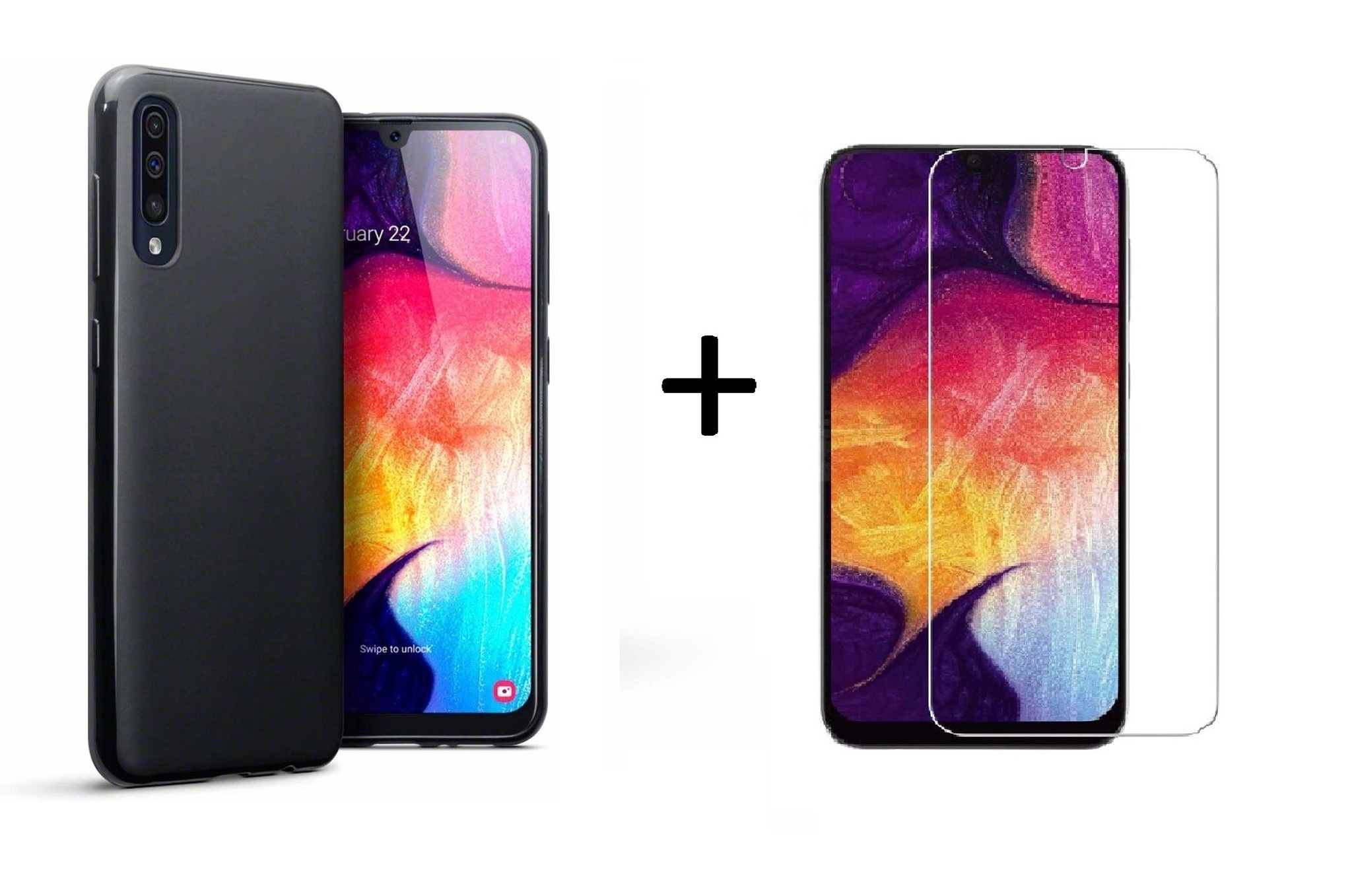Hoesje Silicone Hoesje Flexible & Scratch Resistent TPU Case Samsung Galaxy A50s/A30s - Zwart + Tempered glass screen protector Lees meer