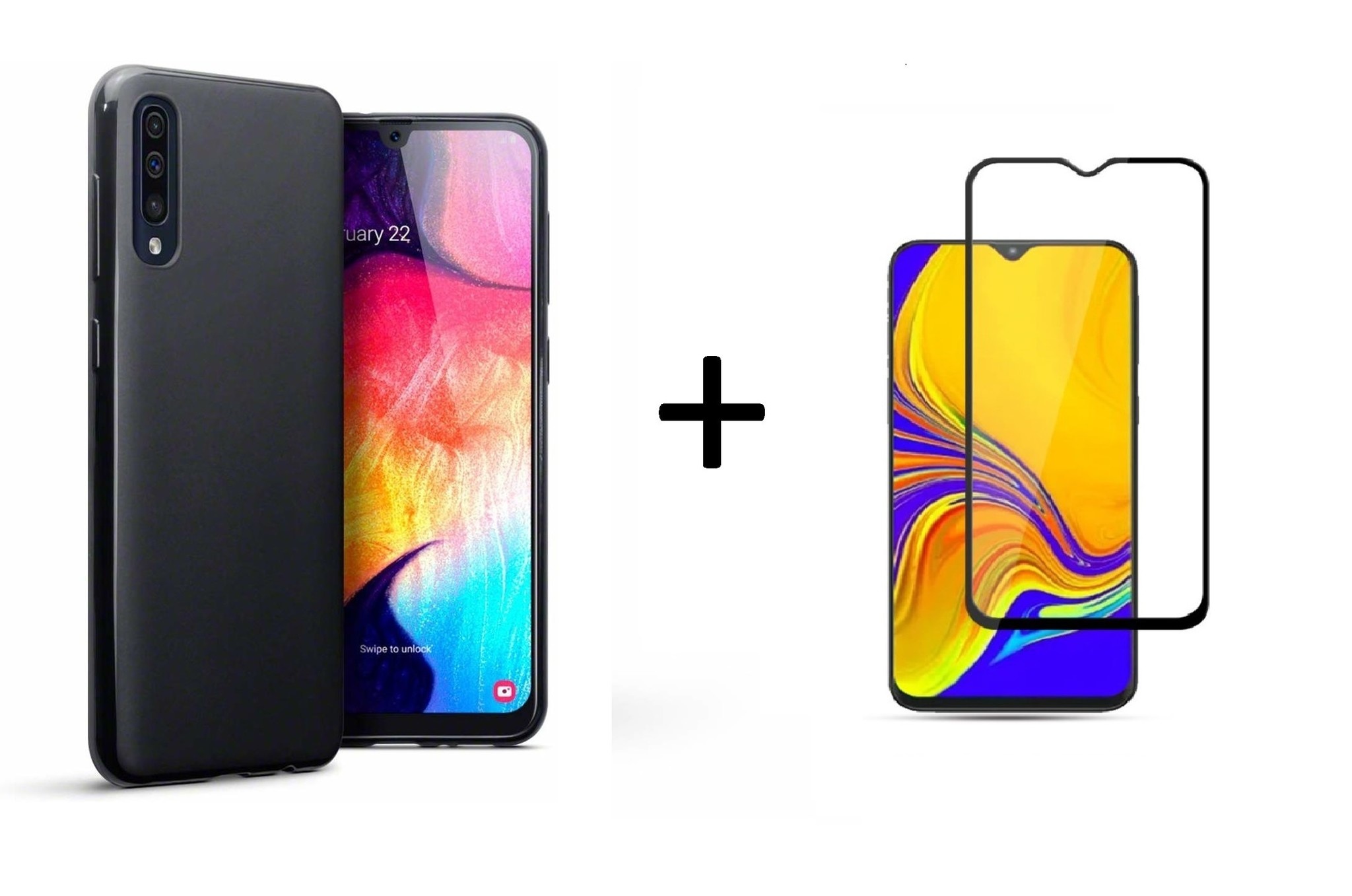 Hoesje Silicone Hoesje Flexible & Scratch Resistent TPU Case Samsung Galaxy A50s/A30s - Zwart + Full Cover Tempered glass screen protector Zwart Lees meer