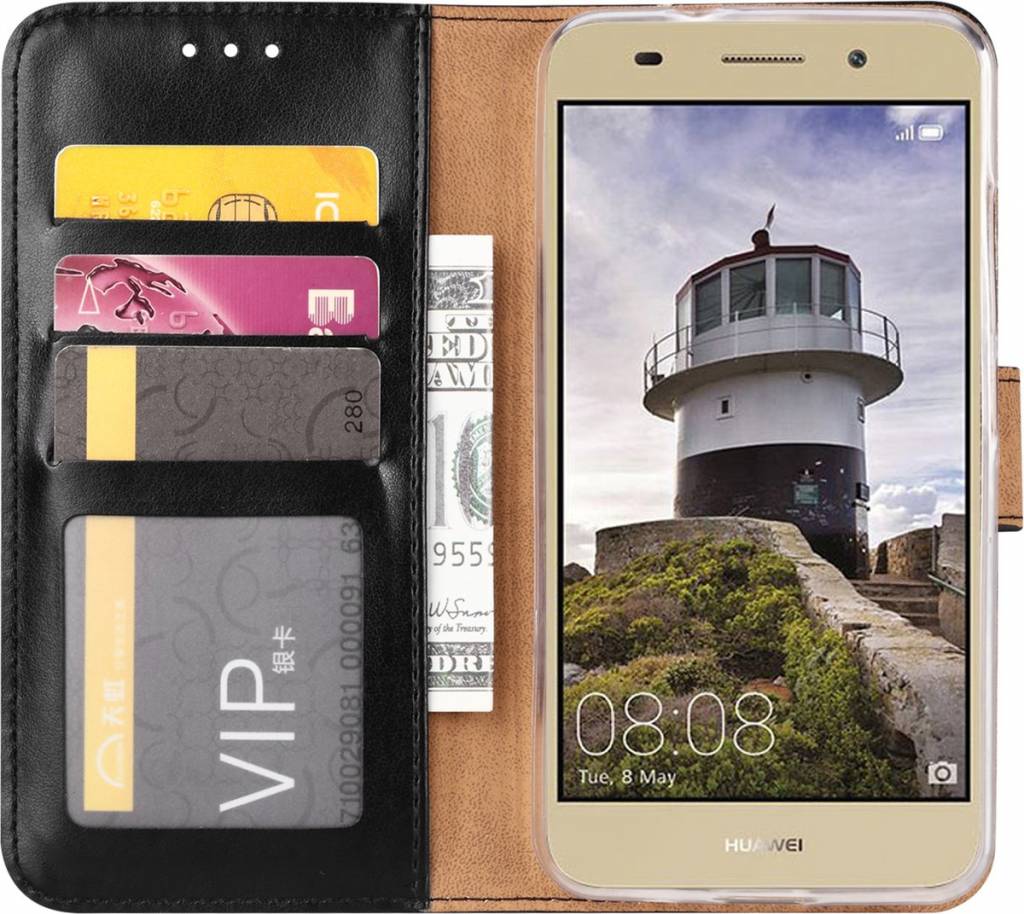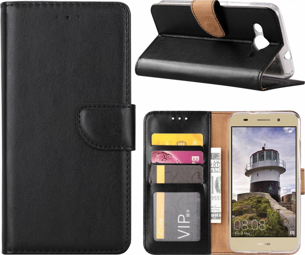 Hoesje voor Huawei Y3 (2018) boektype case / geschikt voor 3 pasjes Zwart Lees meer