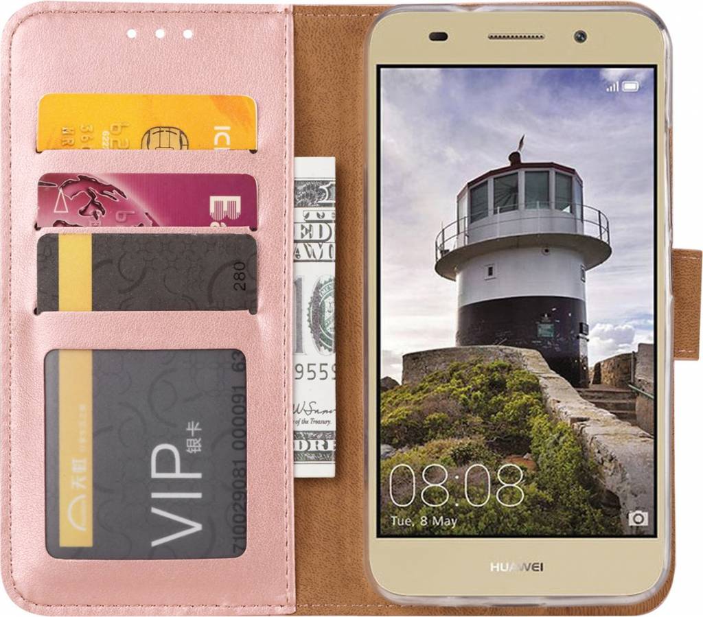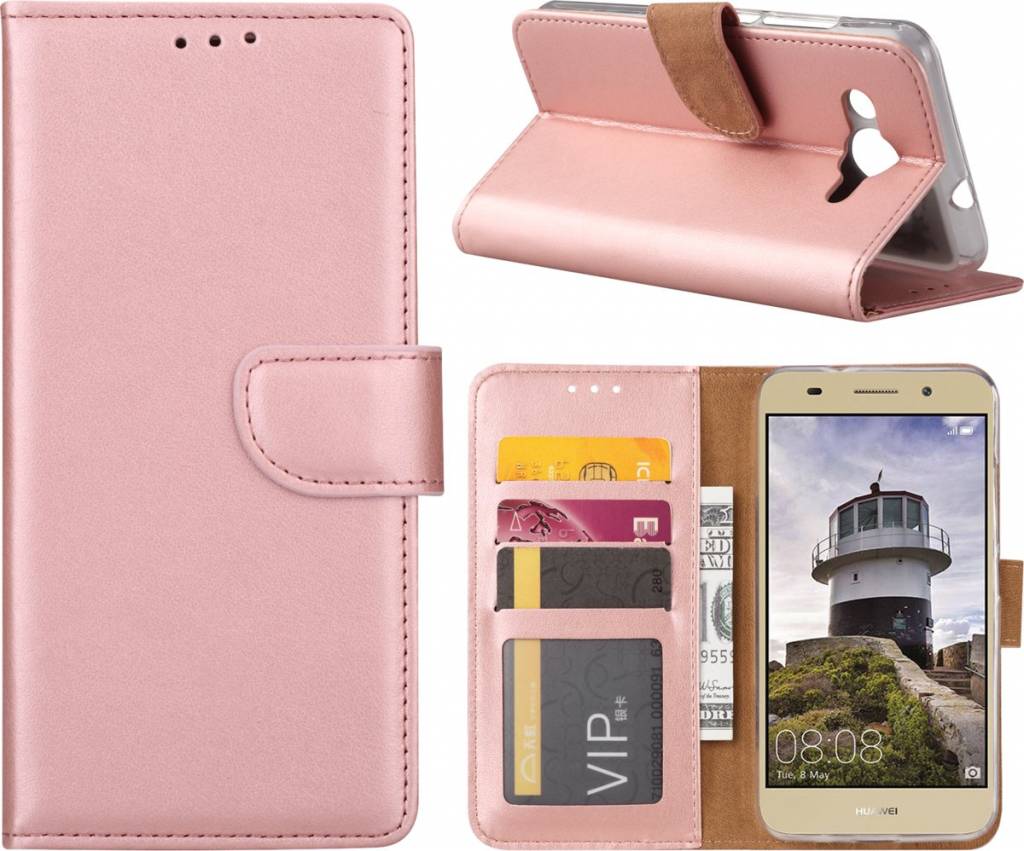 Hoesje voor Huawei Y3 (2018) boektype case / geschikt voor 3 pasjes Rose Goud