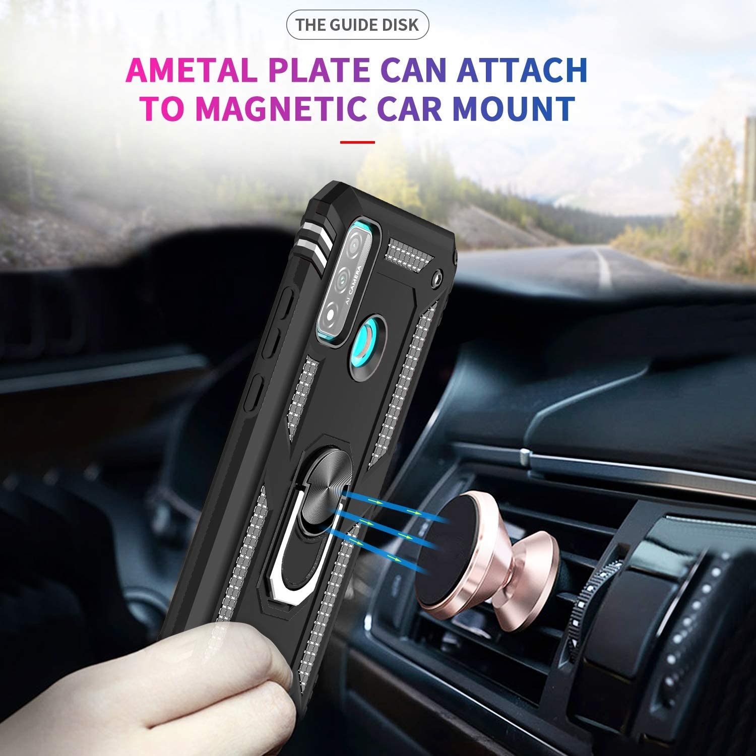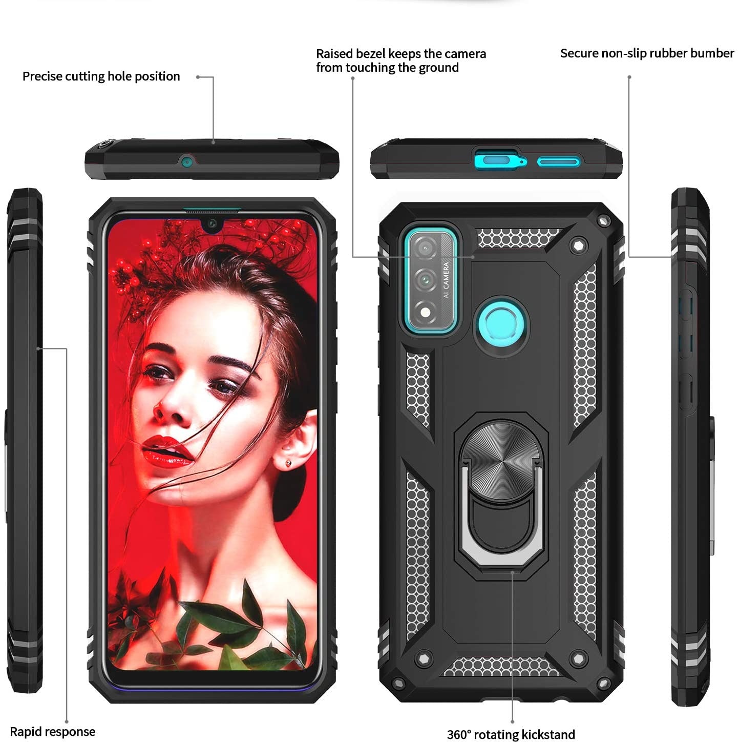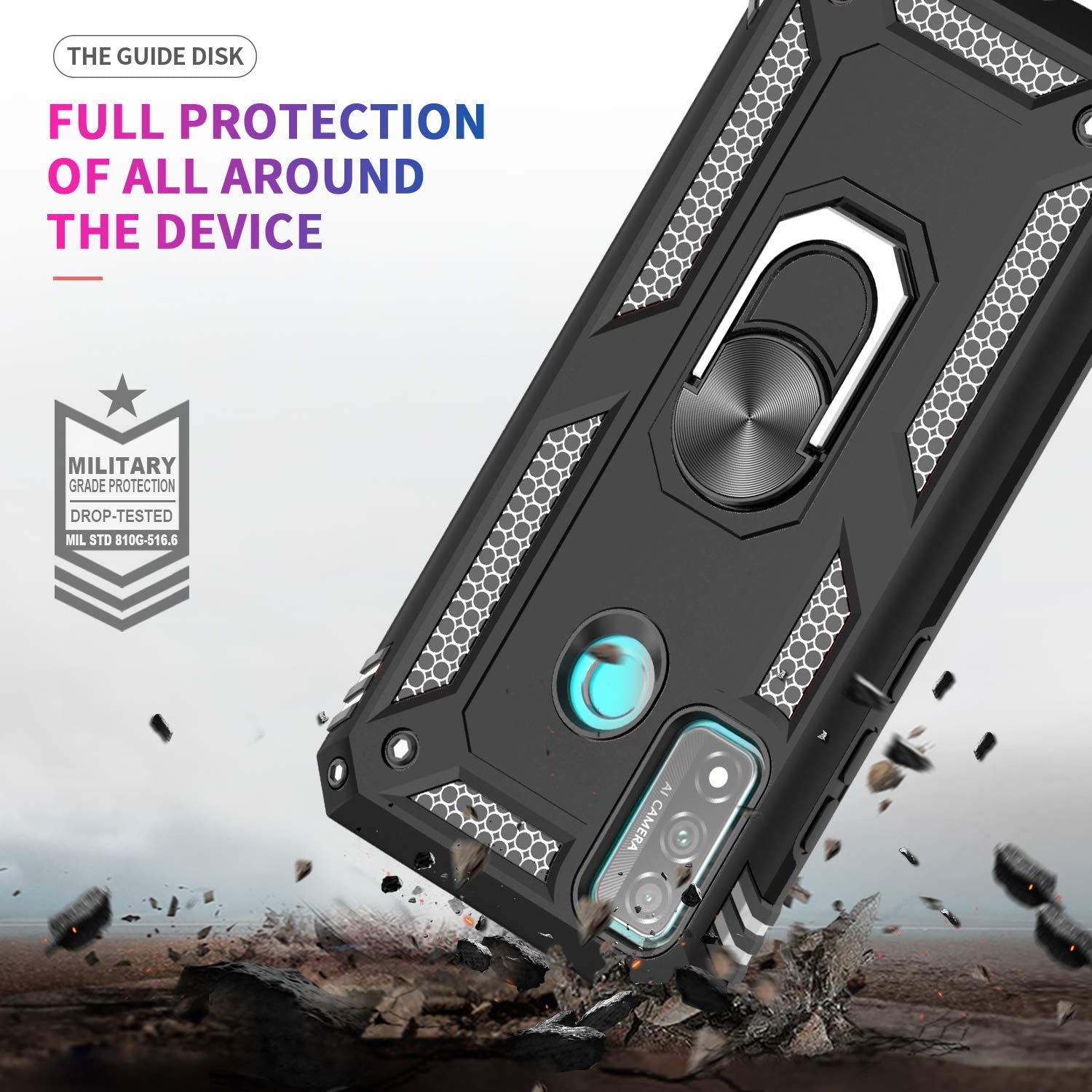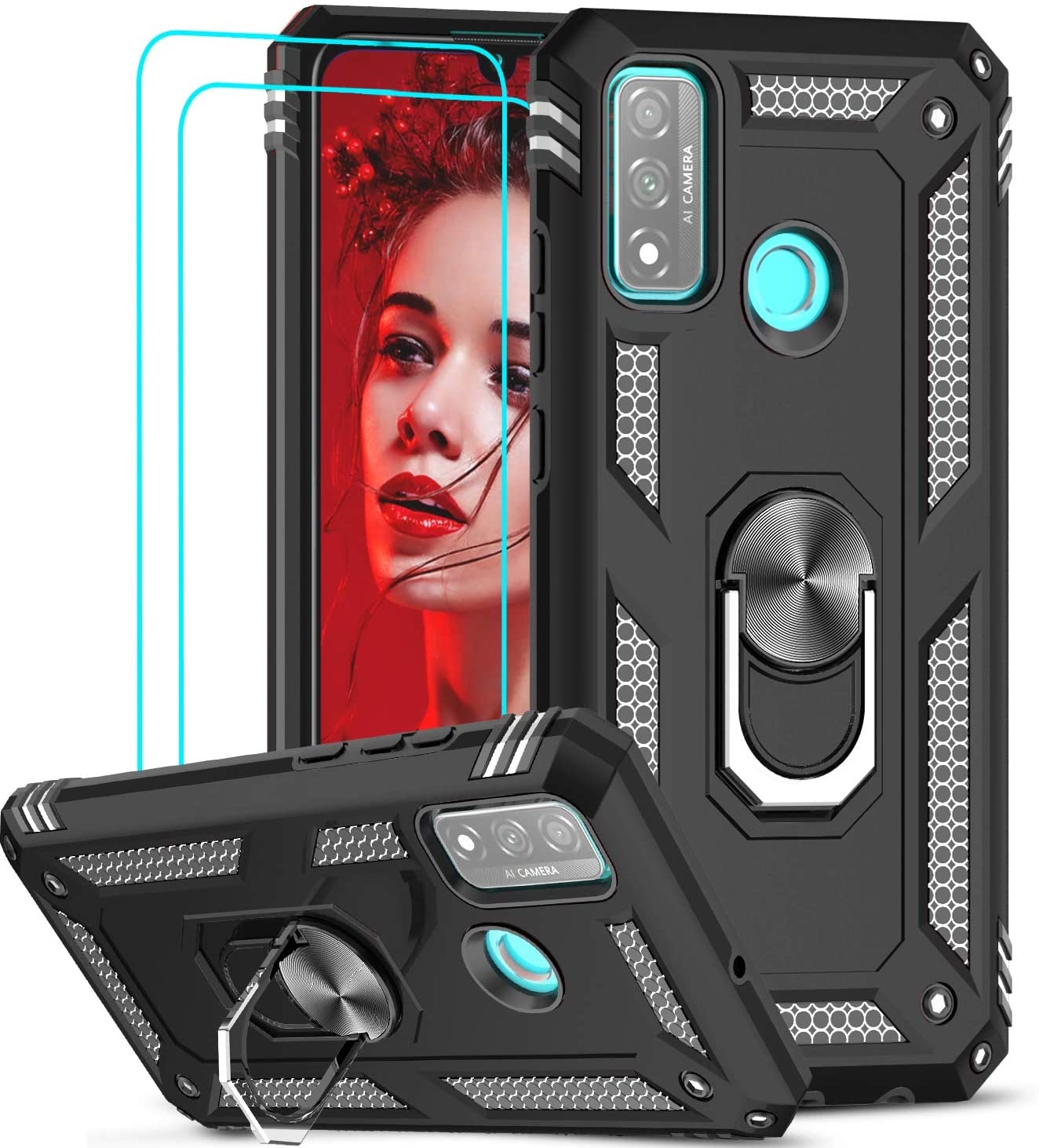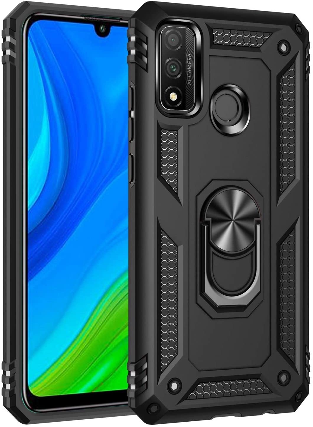 Huawei P smart 2020 Hoesje Ring Houder Armor backcover + 2x Screenprotector - Zwart