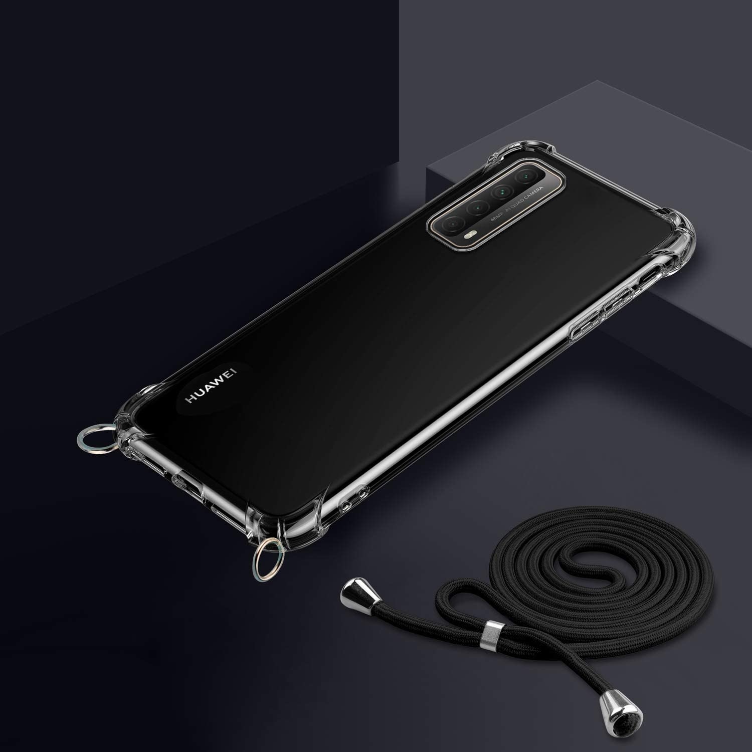 Hoesje Geschikt voor Huawei P smart 2021 Hoesje met Koord transparant silicone case -Hoesje Geschikt voor Huawei P smart 2021 Koord hoesje draagkoord TPU backcover - Zwart
