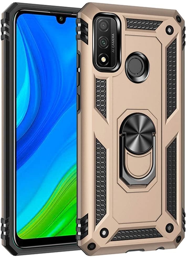 Hoesje Geschikt voor Huawei Y6p Hoesje - Anti-Shock Hybride Ring Armor met Kickstand - Goud