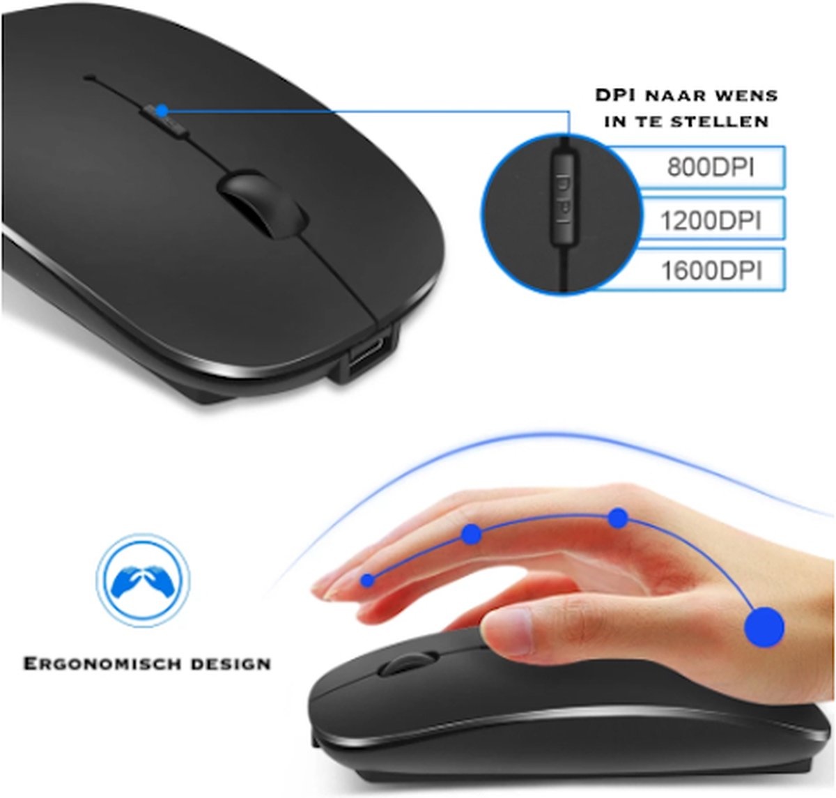 ✔ Lange accuduur – Een volledig opgeladen batterij gaat al gauw een hele maand mee! Zelf als je de batterij maar eventjes oplaadt gaat de batterij al lang mee. 1 uur laden staat gelijk aan ongeveer 168 uur gebruik van de muis. Je kunt de muis alleen niet gebruiken tijdens het laden.