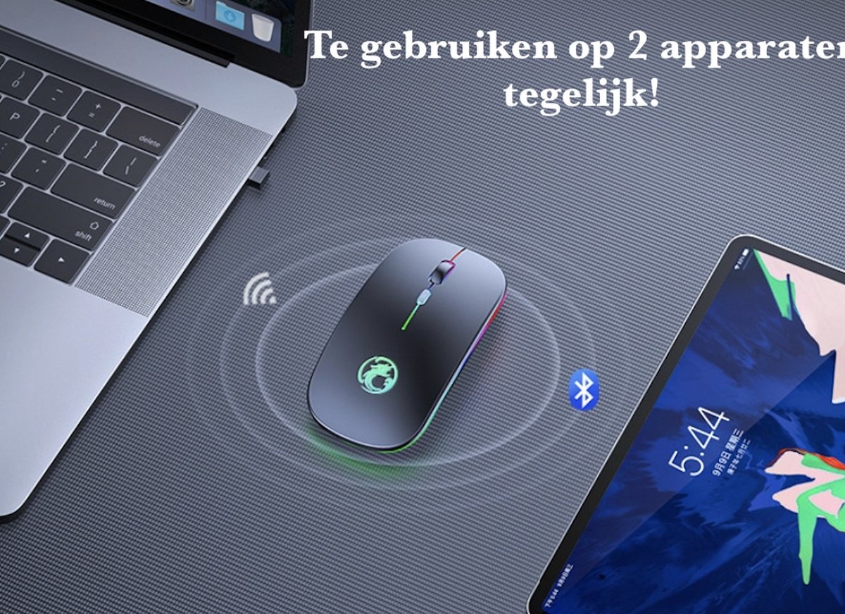 De muis maakt gebruik van zowel wifi als bluetooth om te verbinden met uw apparaten. Doordat je keuze hebt om te verbinden met wifi en bluetooth kan de muis verbonden worden met echt alle soort apparaten. Denk aan je laptop, je pc, je iPad of een andere tablet.