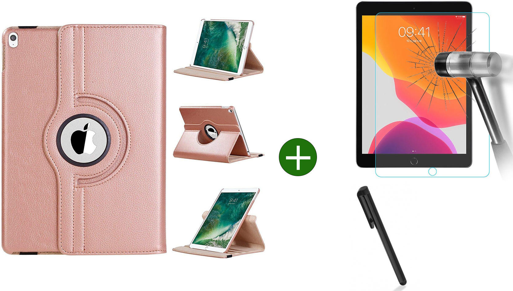 Hoes geschikt voor iPad 2021/2020/2019 (10.2 inch) draaibaar + screenprotector - tempered glass + stylus pen - Rosegoud