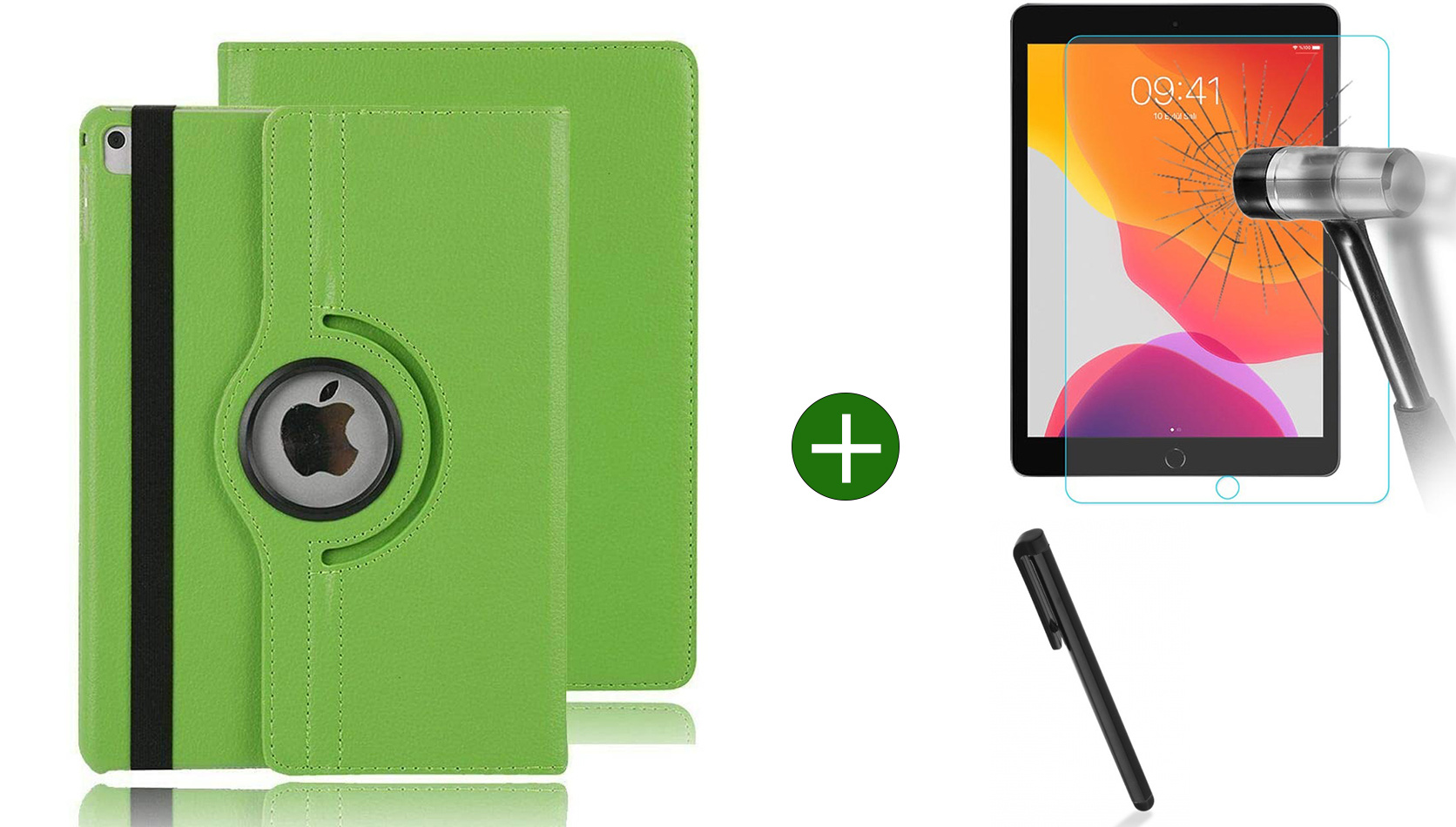 Hoes geschikt voor iPad 2021/2020/2019 (10.2 inch) draaibaar + screenprotector - tempered glass + stylus pen - Groen