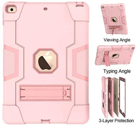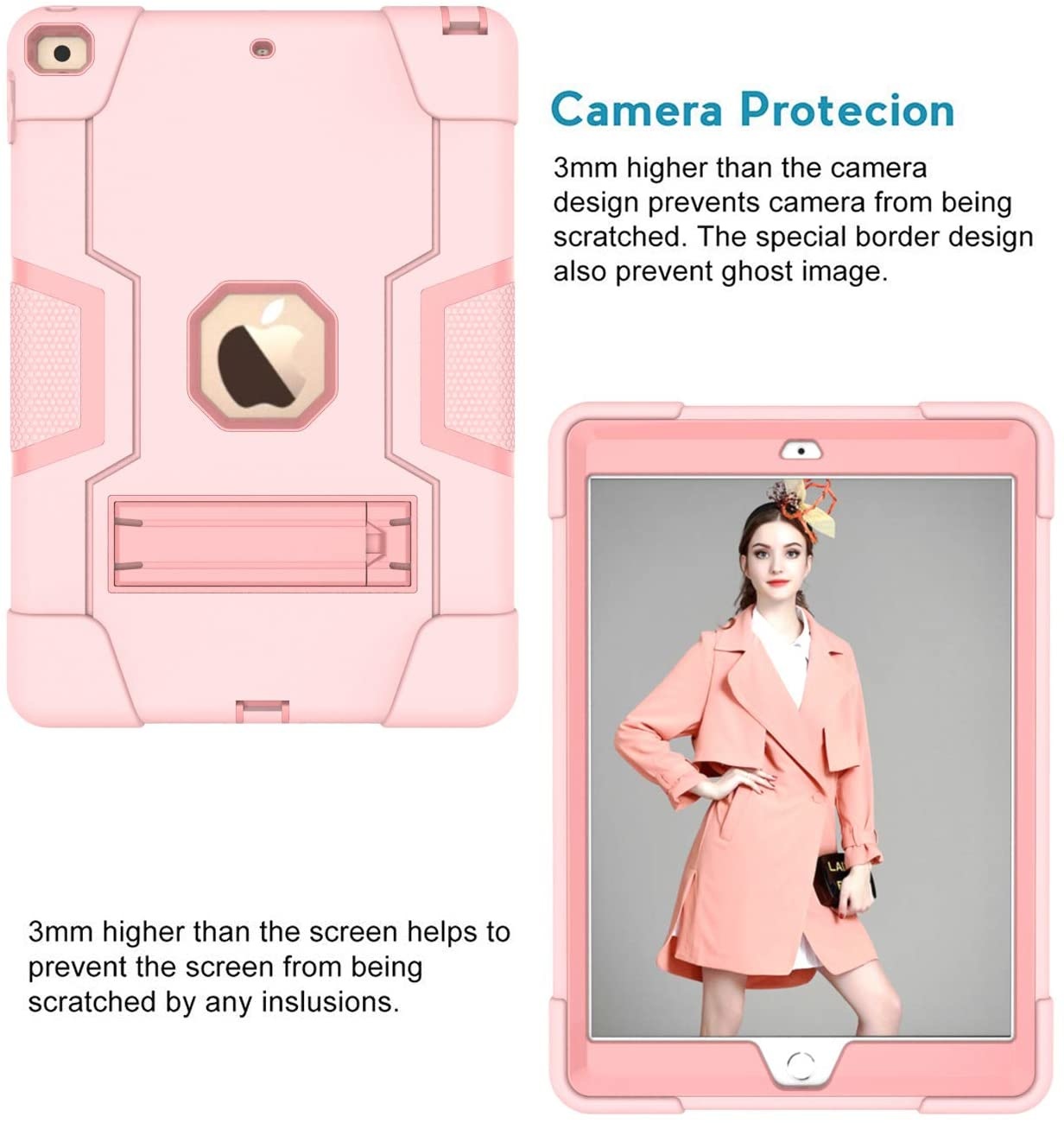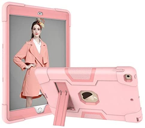 iPad 2021 Hoes - iPad 2020 hoes - Hoes iPad 2019 - iPad 10.2 hoes - Schokbestendige Back Cover met kicktand - Hybrid Armor Case Rose Goud
