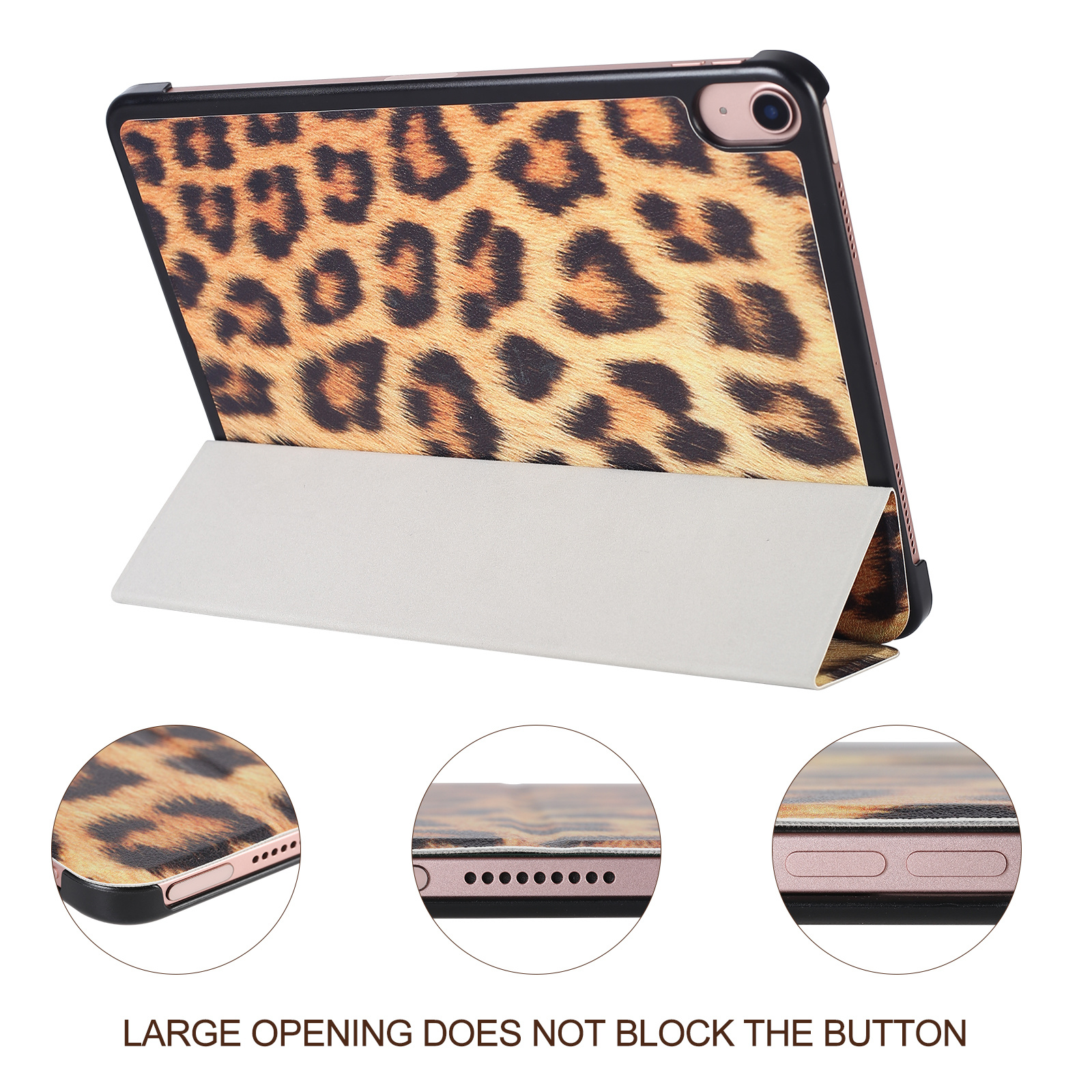 Hoes geschikt voor iPad Air 11 Inch Hoes M3/M2 (2025/2024), iPad Air 5th/4th Gen Bookcase - Trifold Smart Luipaard hoesje