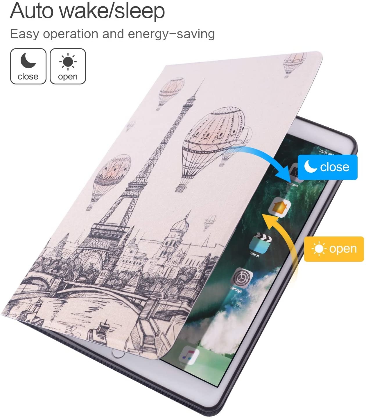 Hoes geschikt voor iPad 2018 Eiffeltoren Print - Hoes geschikt voor iPad 2017 - Hoes geschikt voor iPad 6e generatie trifold case - Hoes geschikt voor iPad 2018 hoes - Hoes geschikt voor iPad 2017 hoes - Hoes geschikt voor iPad 2018 book case smart cover