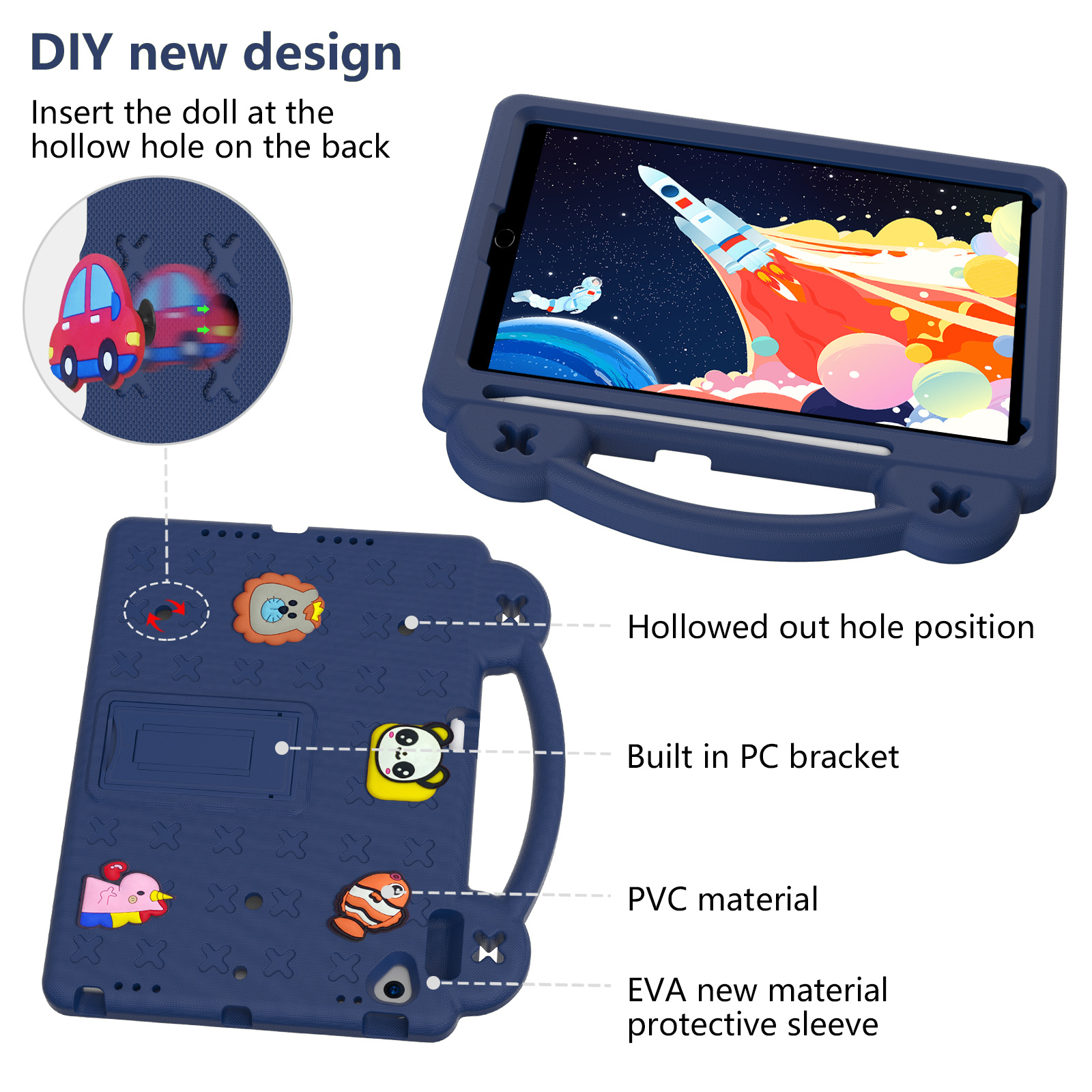 Hoes geschikt voor iPad 9e/8e/7e Generatie Kinderen Donker Blauw - Kidsproof Backcover met handvat - Hoes geschikt voor iPad 2021 - Hoes geschikt voor iPad 9/8/7 Hoes Kinderen -Kindertablet