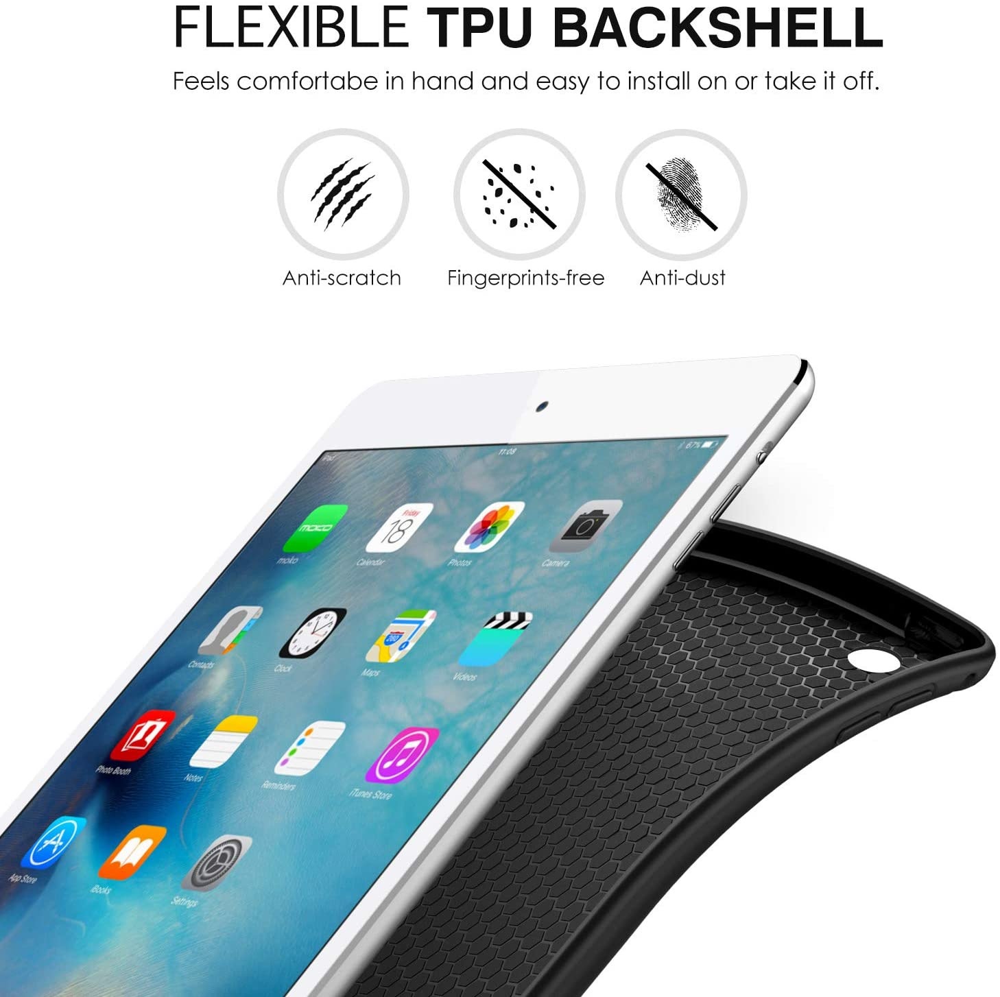 - Hoogwaardige buitenkant van synthetisch leer en zachte microfibervoering in bijpassende kleuren met zachte, flexibele TPU achterkant. Apple iPad Mini 1 / 2 / 3 / 4 / 5 TPU materiaal voelt geweldig aan en laat geen vingerafdrukken of krassen achter