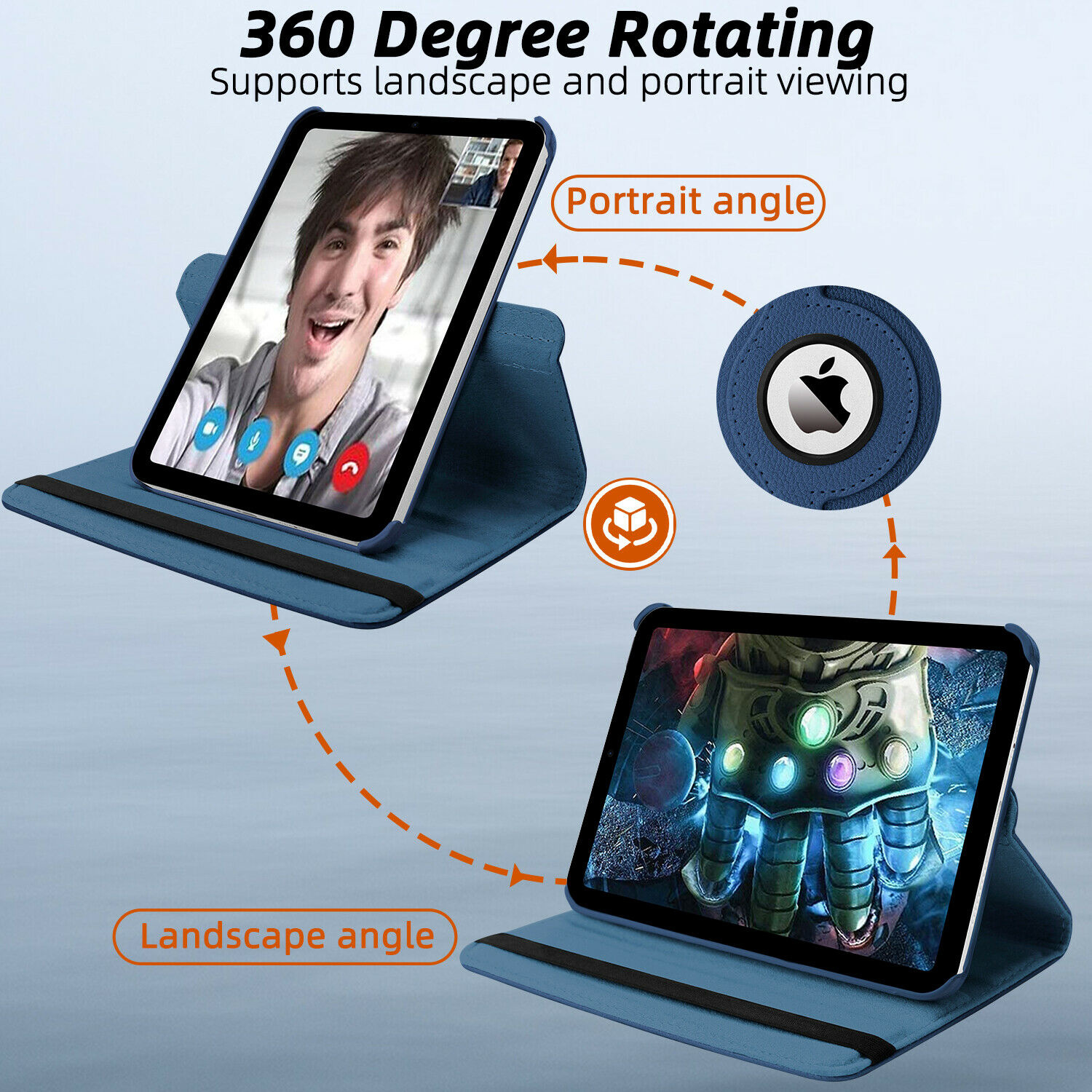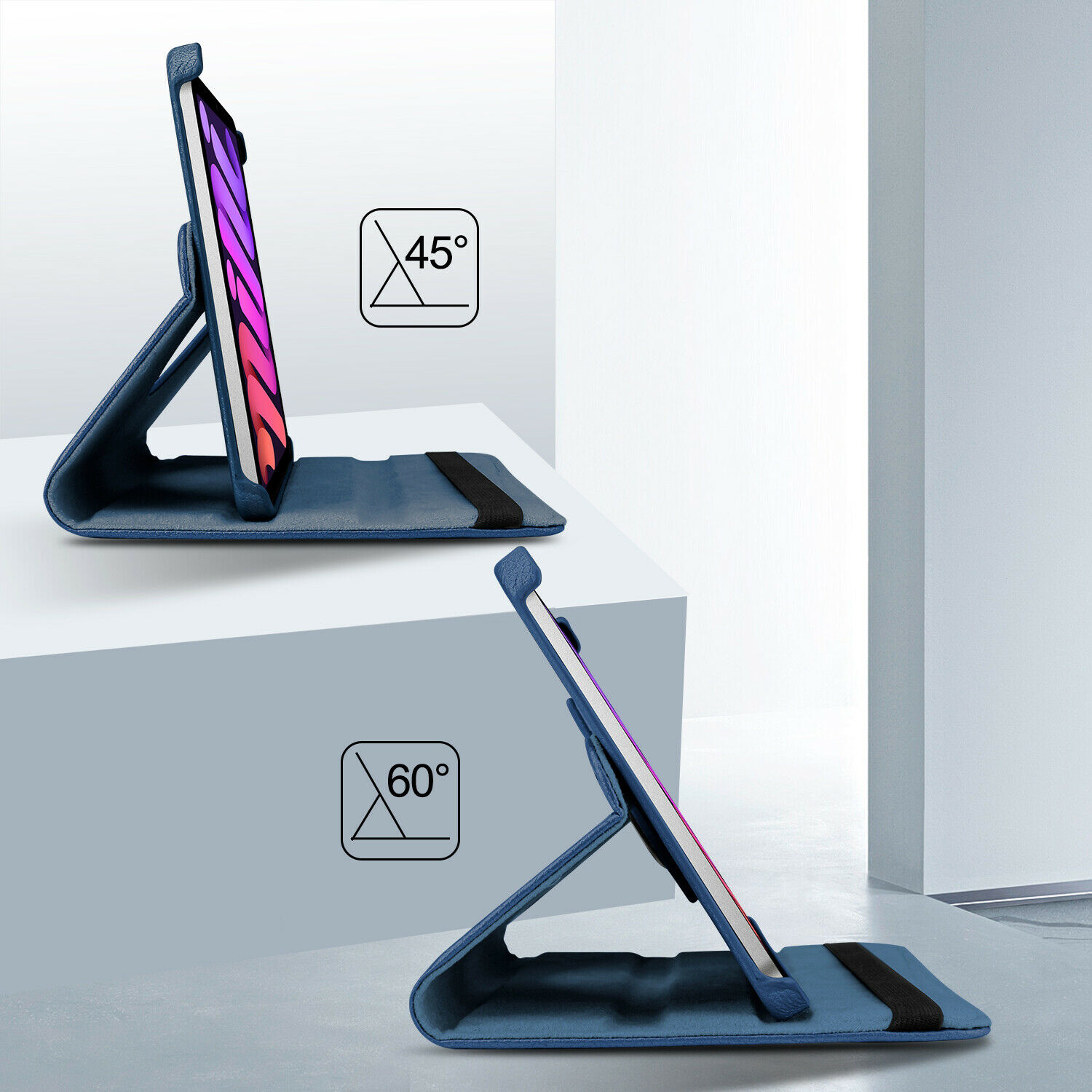 Hoes geschikt voor iPad Mini 6 / iPad mini 2021 Donker Blauw - Hoes geschikt voor iPad Mini 6 cover - Hoes geschikt voor iPad Mini 6 - Hoes geschikt voor iPad Mini 6 hoesje - Hoes geschikt voor iPad mini 6 case - 360° draaibare Hoes Kunstleer