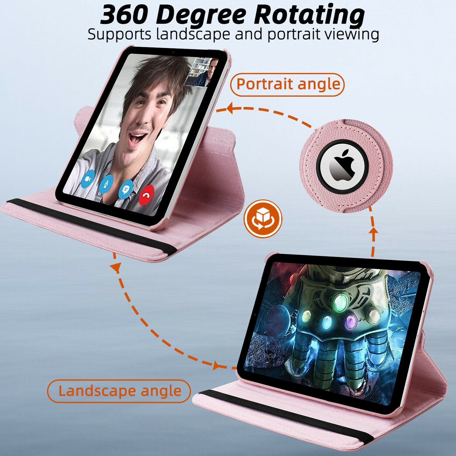 Hoes geschikt voor iPad Mini 6 / iPad mini 2021 Rosegoud - Hoes geschikt voor iPad Mini 6 cover - Hoes geschikt voor iPad Mini 6 - Hoes geschikt voor iPad Mini 6 hoesje - Hoes geschikt voor iPad mini 6 case - 360° draaibare Hoes Kunstleer